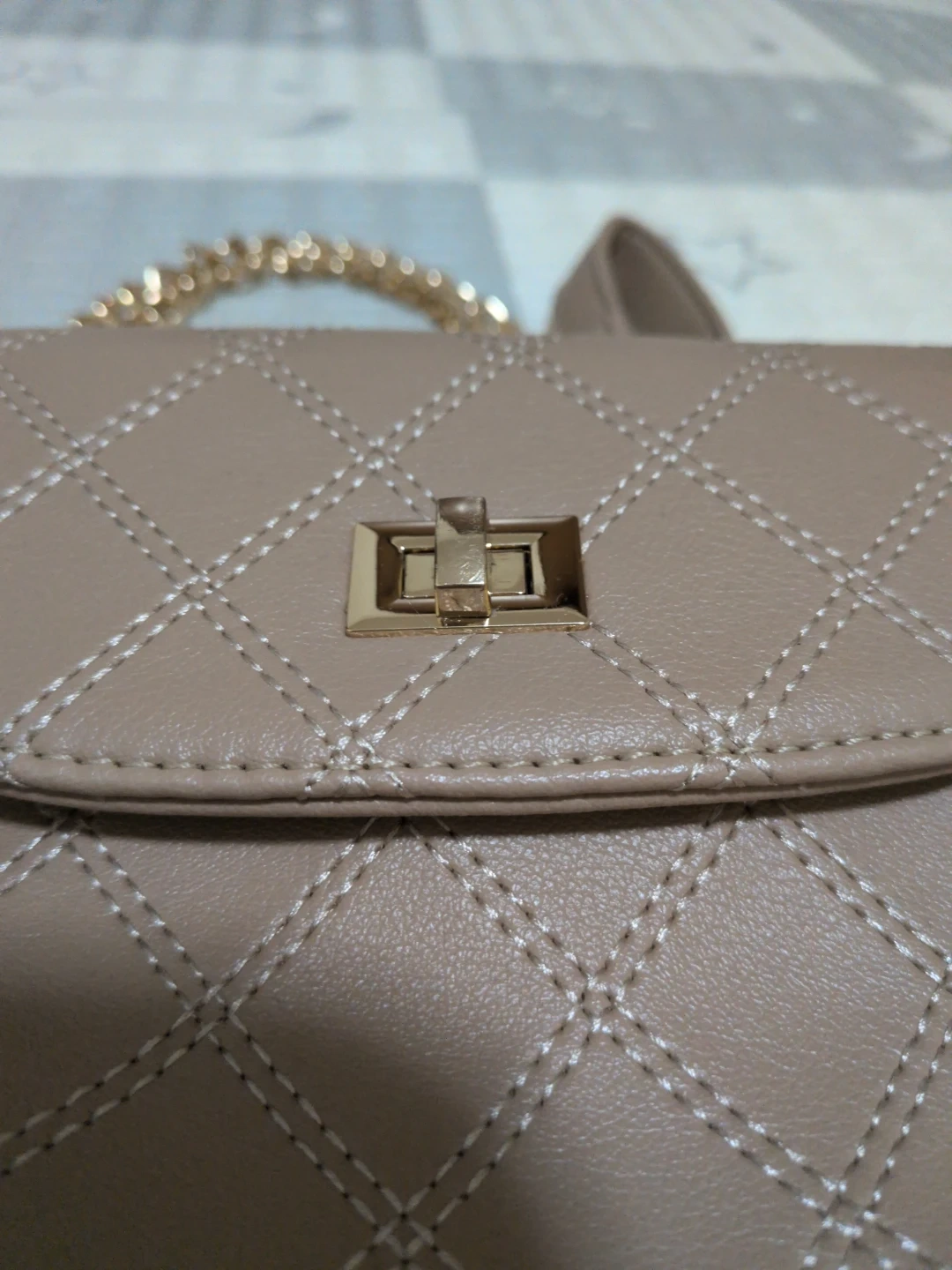 ベージュのショルダーバッグです! 【情報】 ・色:ベージュ ・素材:合成皮革 ・ゴールドチェーン ・チェーンストラップ付き ・キルティングデザイン ・内側ポケット:あり ・縦約18cm 横約17〜19cm ・チェーンの長さ約50cm ・袋から出して中身確認程度で、使用なし 自宅保管、中古品であることご了承ください。 通販サイトにて購入しましたが、出番なくずっとしまいっぱなしでした。。 ビビッとこられた方いらっしゃればぜひメッセージお願いします^^ 現物を見て、思ったものと違う場合はキャンセルも可能です! 随時出品しますので、まとめてのご購入もご検討ください(^^)