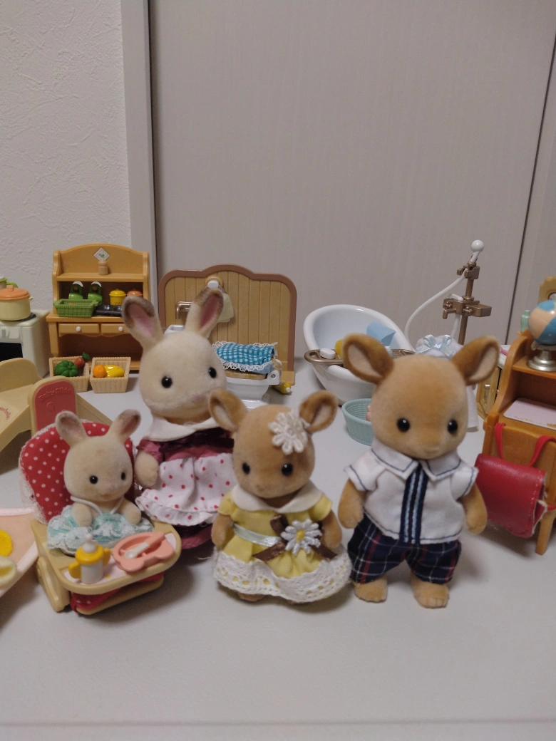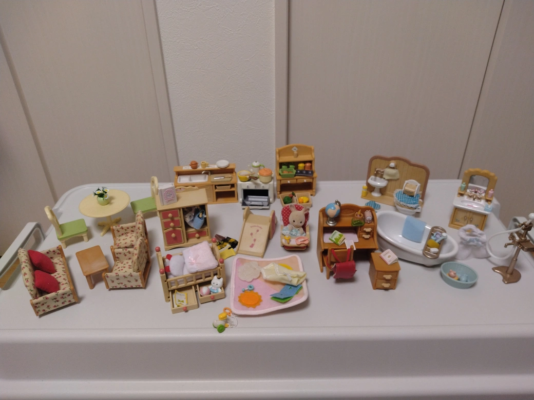 シルバニアファミリーの「緑の丘の大きなお家」と家具、人形のセットです。 5〜7の写真の赤丸の点は購入時からあり、8枚目の写真は多少擦れがあります。 家自体は割ときれいで柵なども揃っています。 人形や家具は汚れや擦れがあります。 子供が使わなくなり、自宅保管していました。 タバコ、ペットありません。 箱は捨ててしまっていますので、他の段ボールにお入れしてお渡し予定です。 すぐに遊べます。宜しくお願いします。