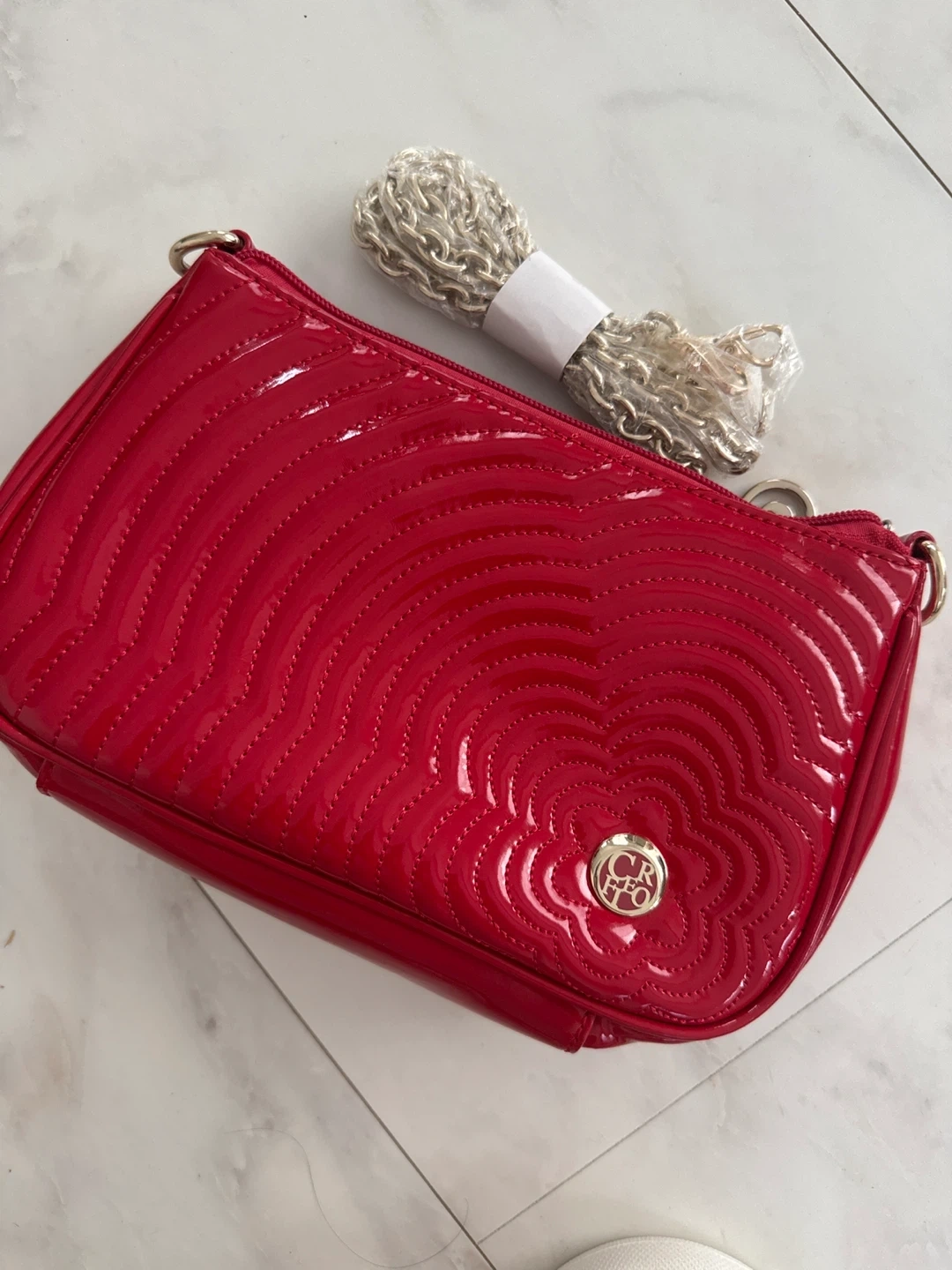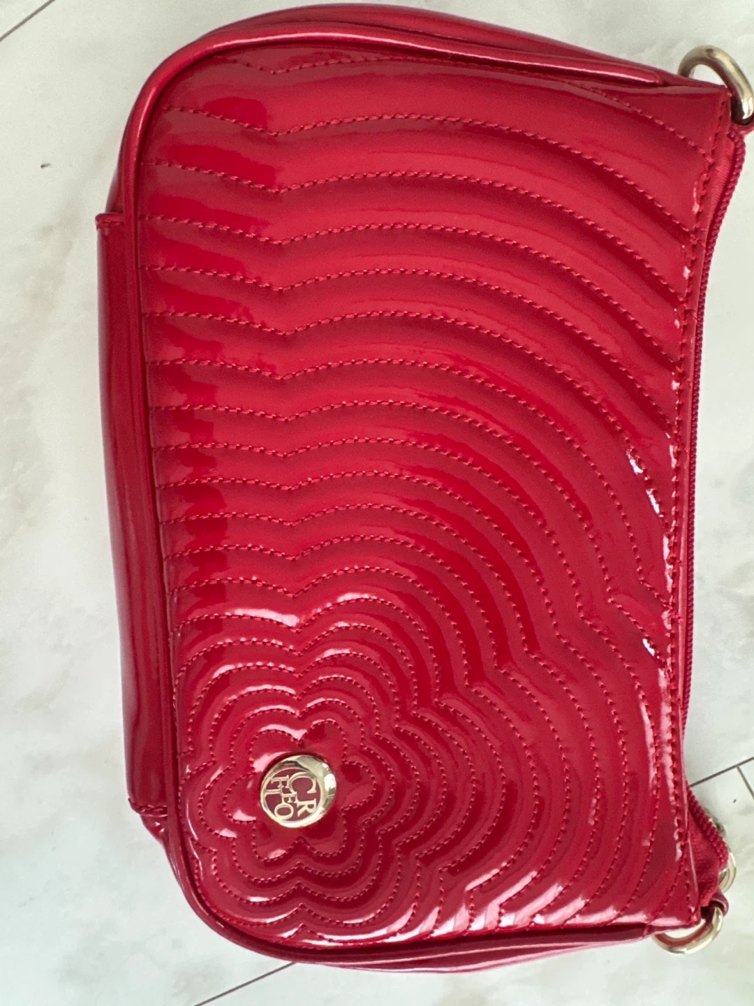 あたたかさシーアールのハンドバッグです ・カラー:赤 ・デザイン:花柄 ・素材:エナメル ・付属品:チェーンストラップ(未使用) ・状態:目立つキズや汚れなし 中古品であることご了承ください