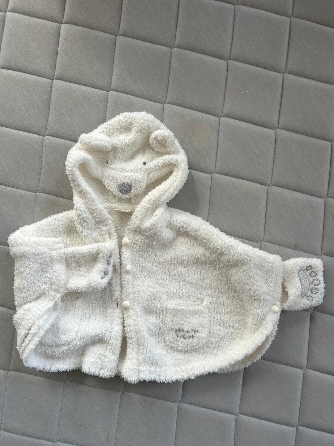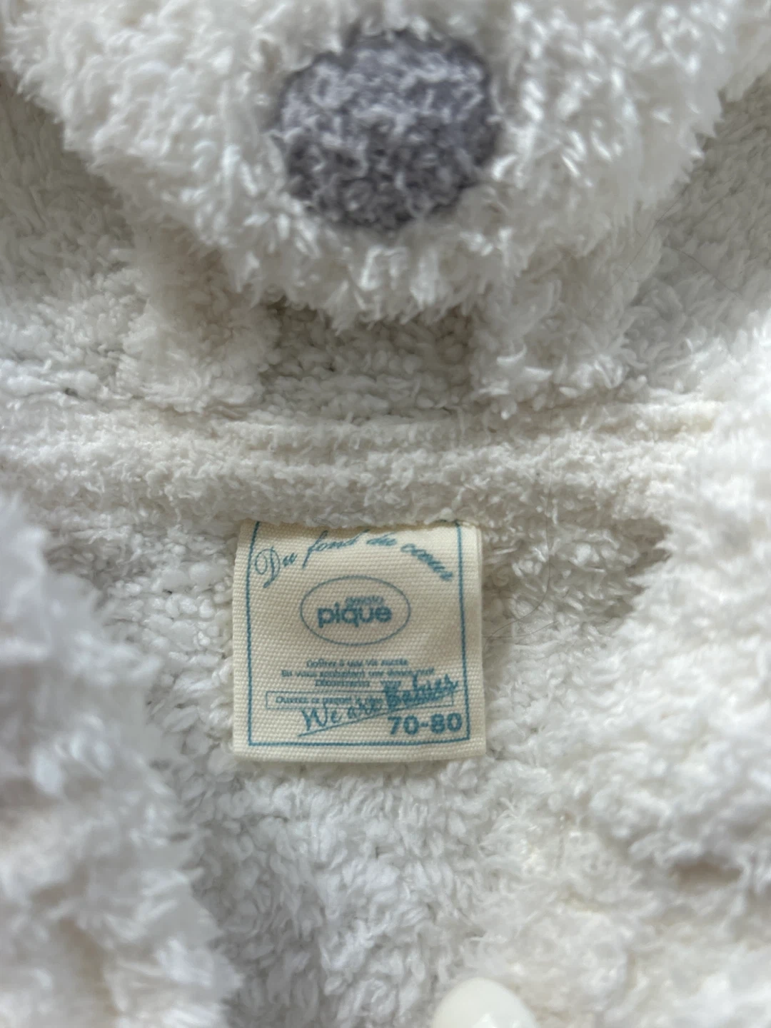 ジェラートピケのベビーポンチョです ・ブランド:ジェラートピケ ・サイズ:70-80 ・色:オフホワイト ・クマのデザイン ・使用感少なめ お祝いに頂いた物で、大切にしていたので、あまり使用頻度は高くありません。 中古品であることご了承ください