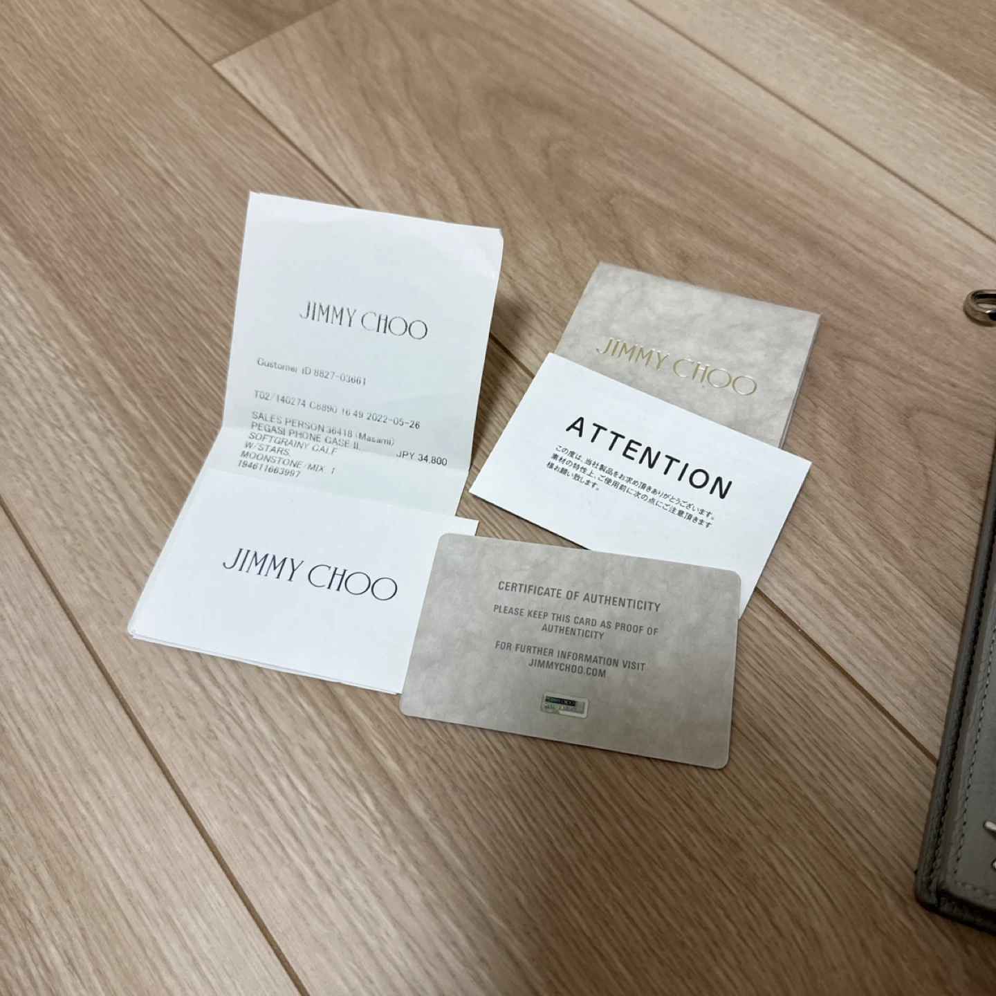 ジミーチュウのスマホケースです。 ・ブランド:ジミーチュウ ・カラー:グレー ・デザイン:スタッズ 2022年に 御殿場アウトレットにて購入しましたが、使わないため出品しました。 保証書もありますが、同時にもう一品買ったのでカードはどちらのものかわかりません。多分もう一品の方かと思いますので付けません。 34.800円で購入しました。 角の少し色が剥がれてます。 #Jimmychoo #ジミーチュウ #スマホホルダー #ケータイケース #ケータイバック #スマホショルダーバック