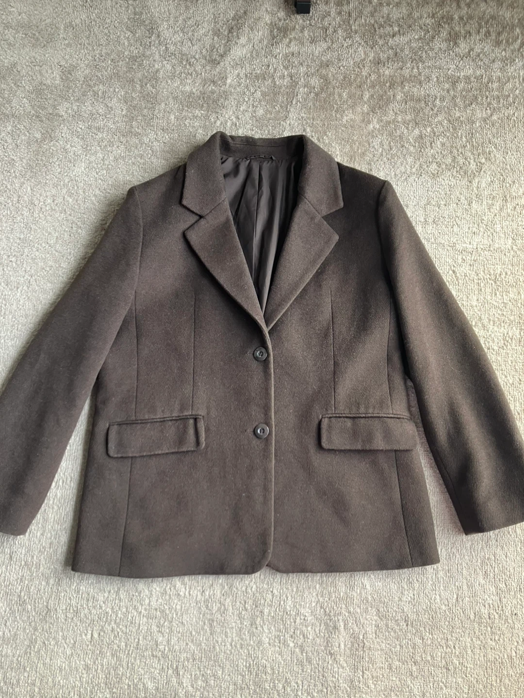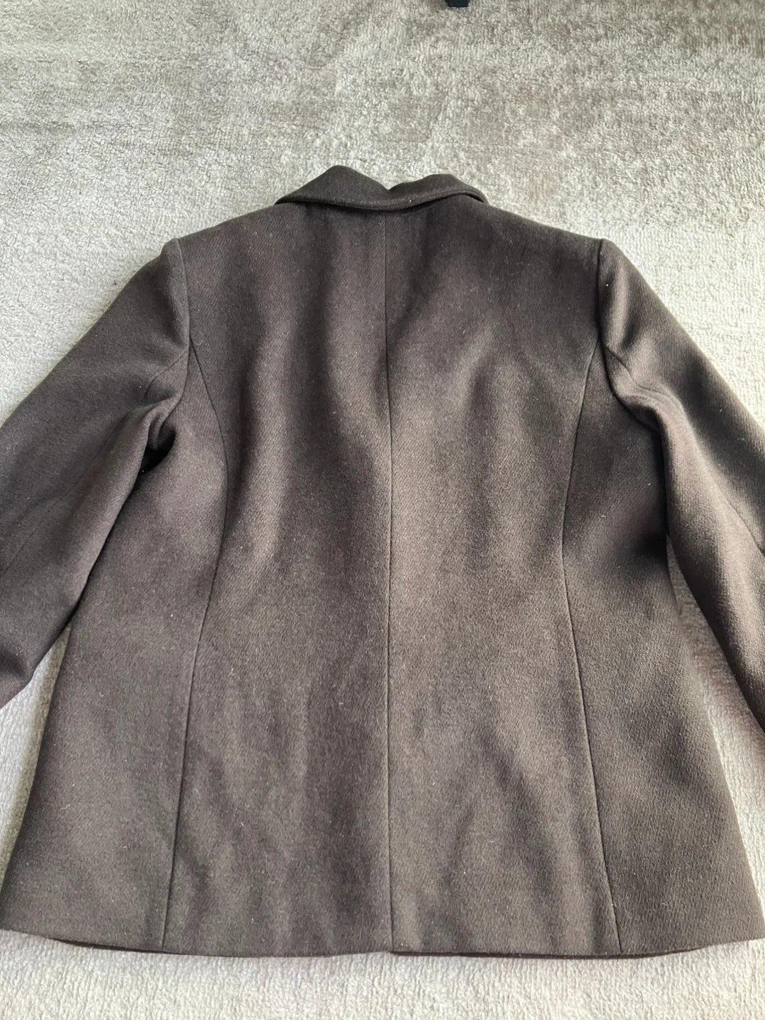 ブラウンのジャケットです 目立った汚れはありませんが、若干使用感あり。 厚手の生地なのでコートがわりにも着れると思います。 レディースのMサイズです。 身幅53cm 丈65cm ・色:ブラウン ・使用感:少なめ ・目立つ傷なし 中古品であることご了承ください