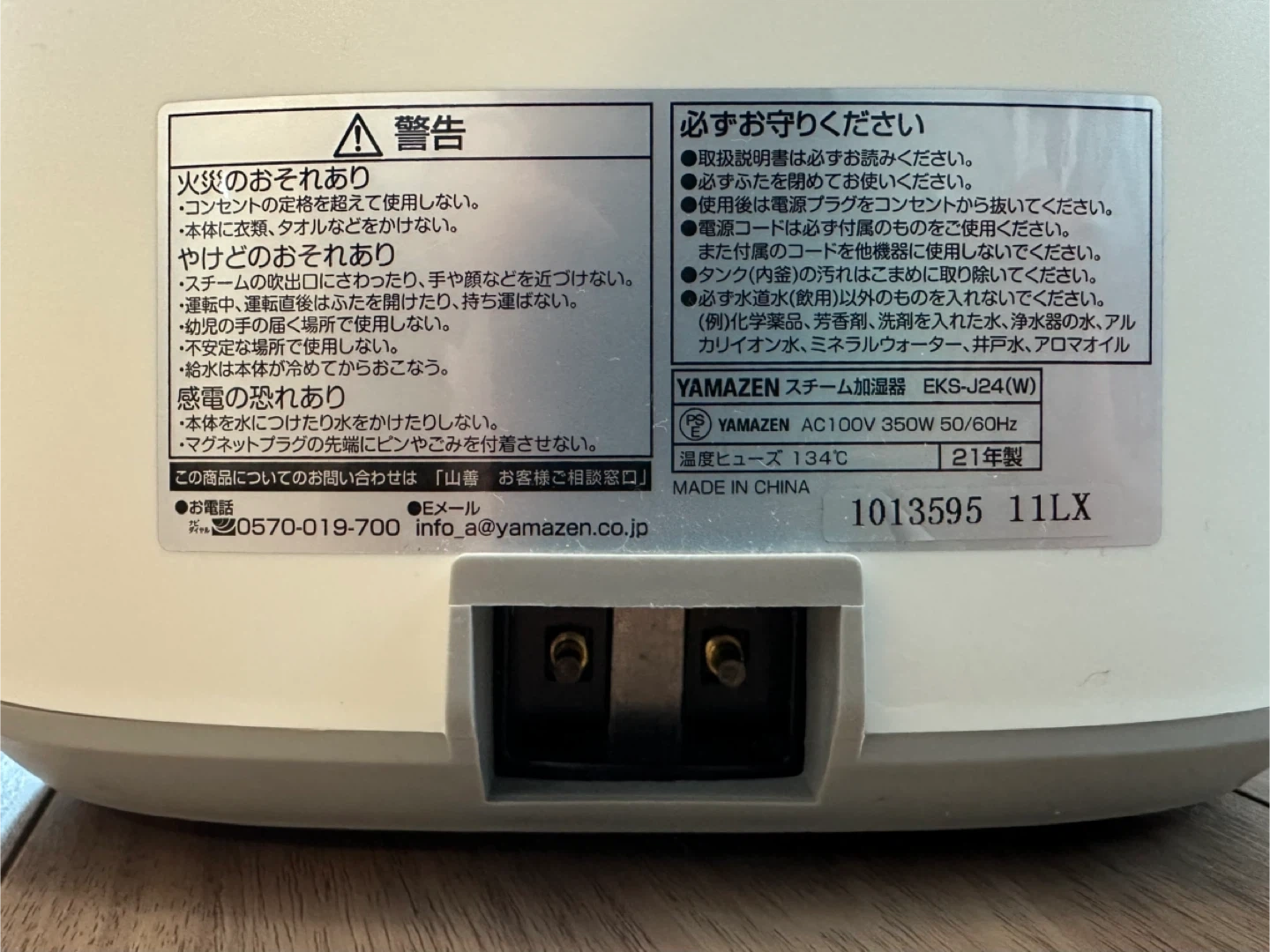ヤマゼンのスチーム加湿器です。 【情報】 ブランド:ヤマゼン 型番:EKS-J24(W) 年式:21年製 電源コードを紛失してしまったのでジャンク品としてお譲りいたします。 よろしくお願いいたします。
