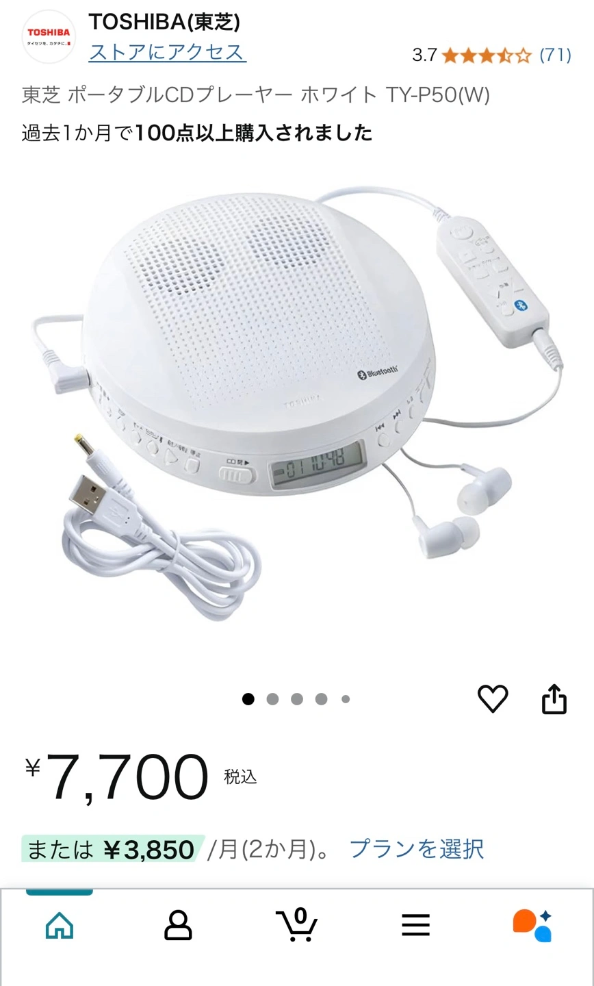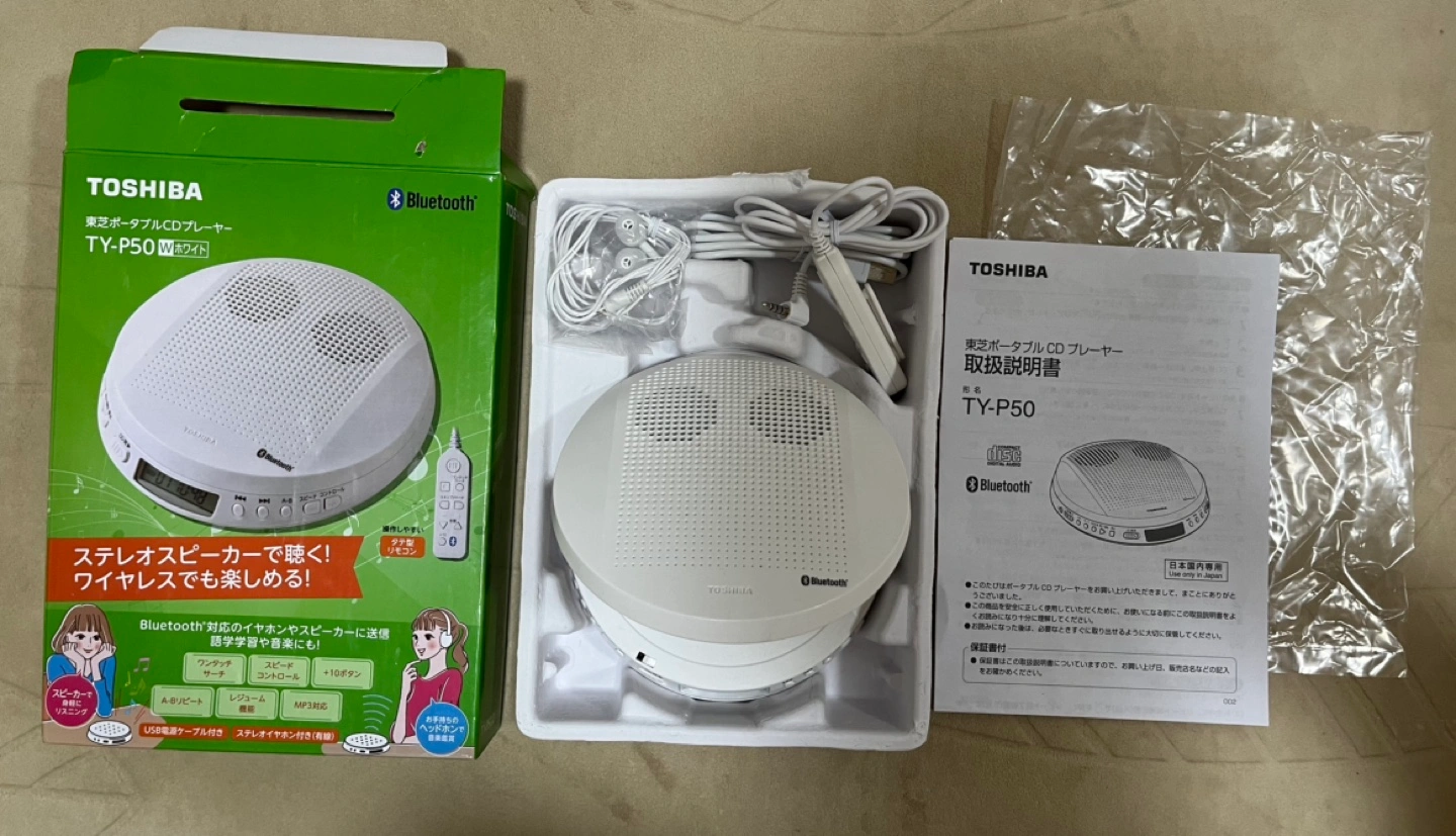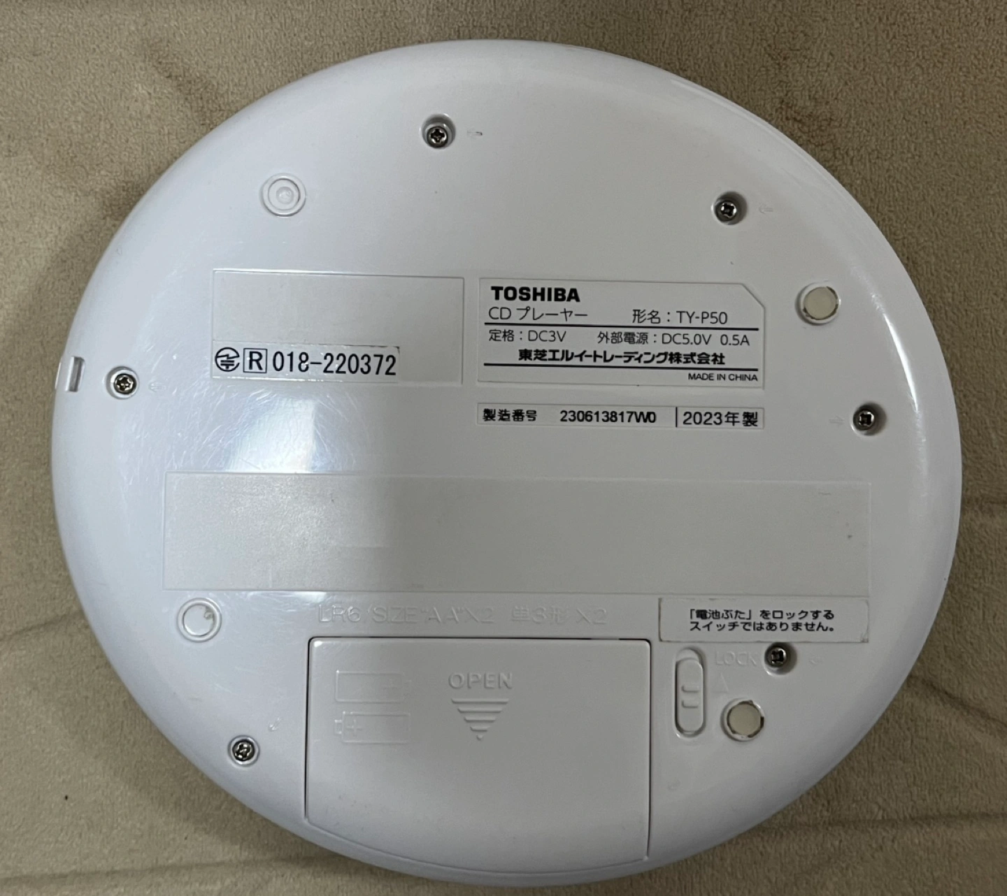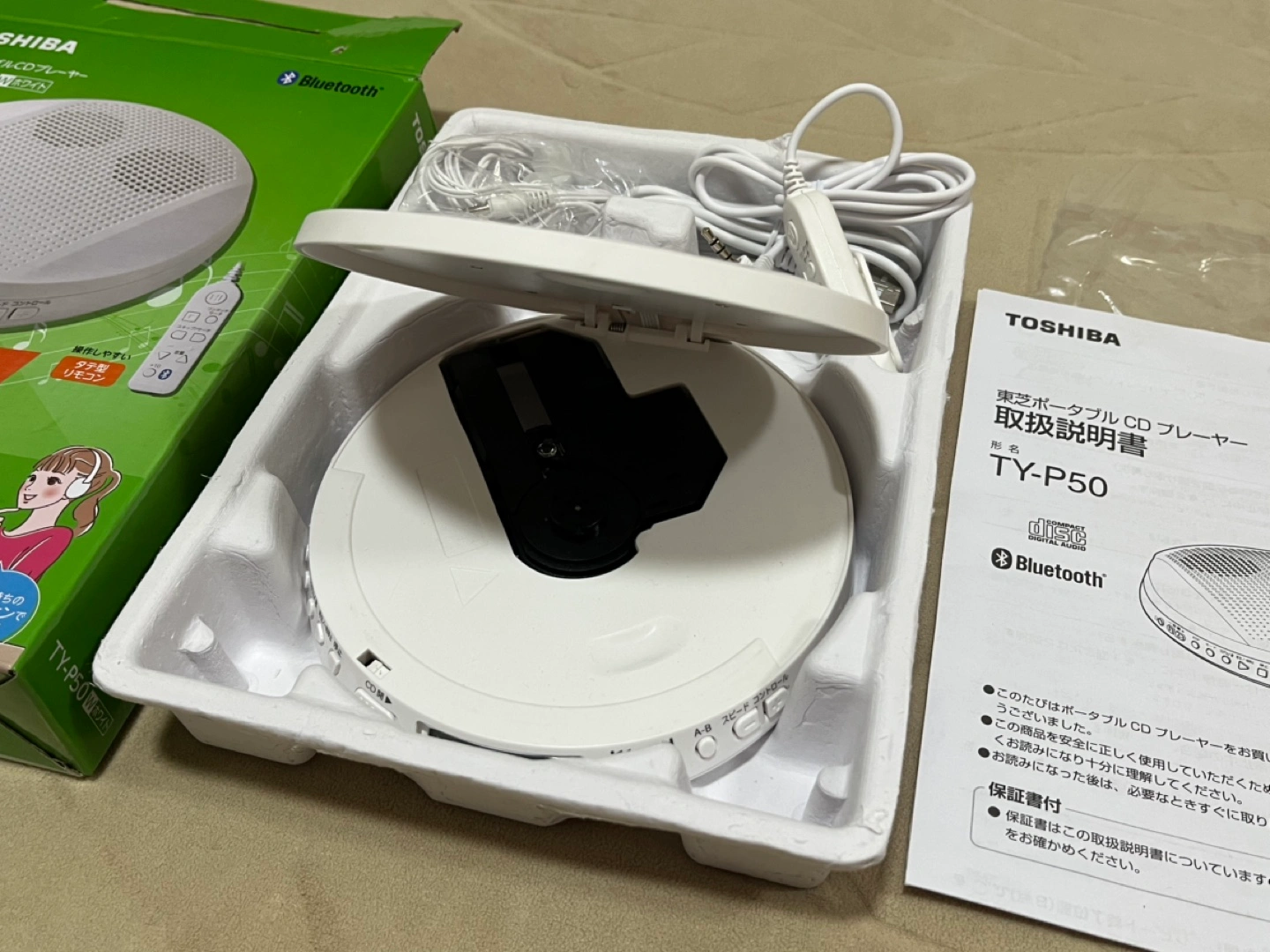 TOSHIBA 東芝 ポータブルCDプレーヤー TY-P50(ホワイト) 父が使用していた2023年製の東芝のポータブルCDプレイヤーです。 写真の通り爪の部分が割れてしまい、閉じません。 付属品は、USB電源ケーブル、リモコン(クリップ付き)、ステレオイヤホン(お試し用・有線)、取扱説明書、全て揃っております。 単3電池も2本入れたままです。 修理して使用できる方や部品が欲しい方など、よろしくお願いいたします。 ジャンク品として0円でお譲りいたしますので、ノークレームノーリターンでお願いいたします。