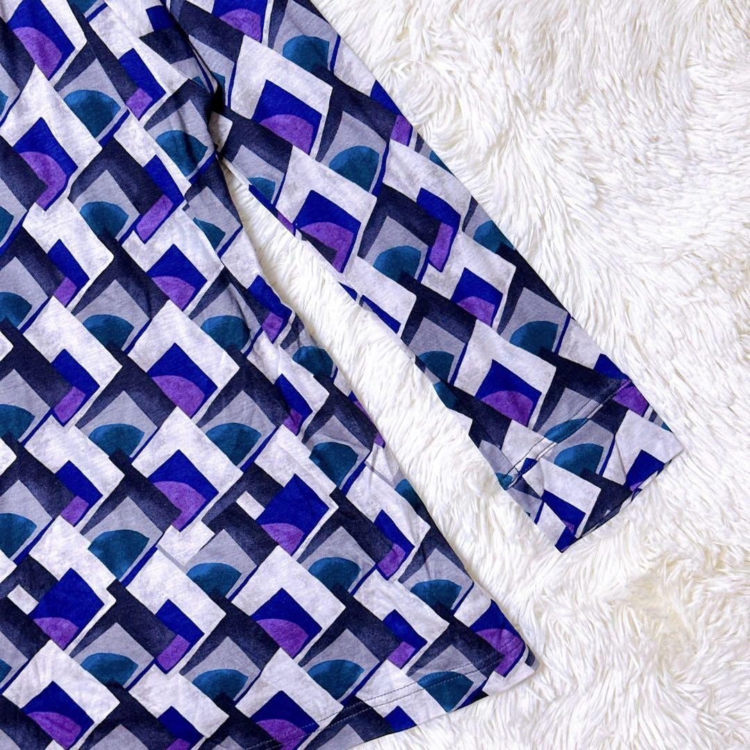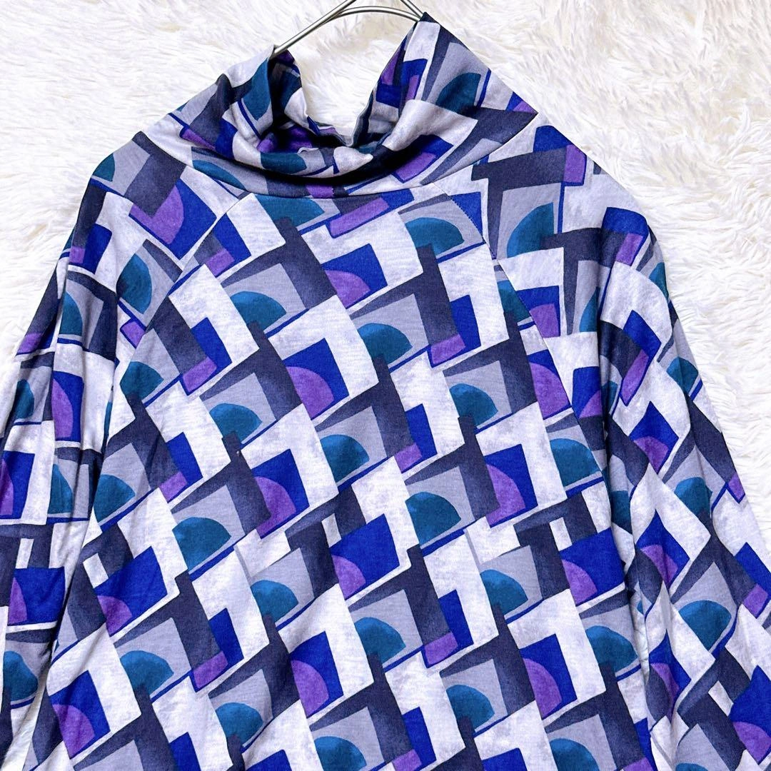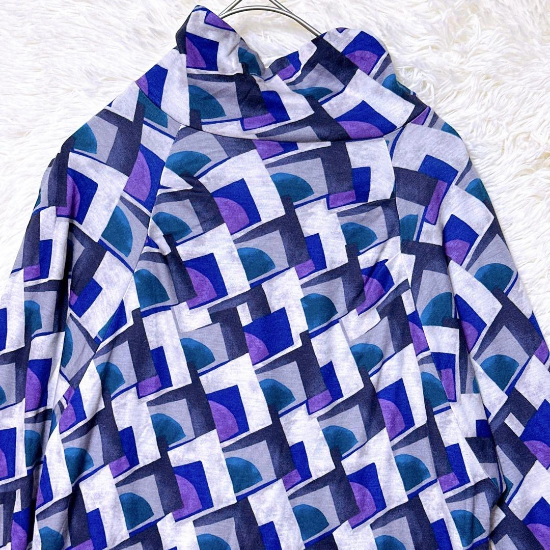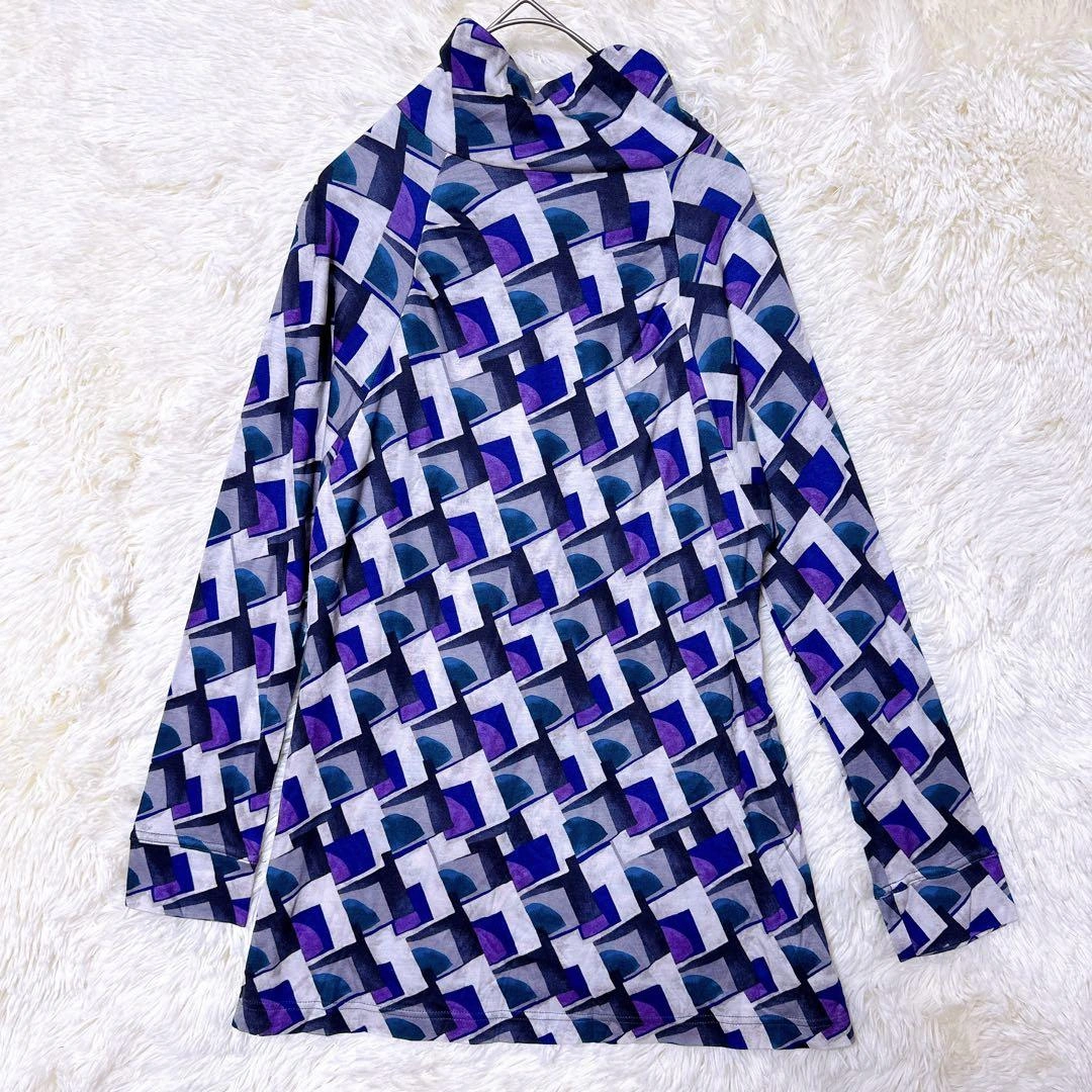 あたたかさ紫と青の幾何学模様のタートルネック長袖チュニックです。 写真にてご確認ください。 サイズ:36(Sサイズ相当) 着丈:60cm 身幅:43cm 裄丈:72cm 素人寸法のため、若干の誤差はご了承ください。 ご質問は購入前にお願いします。 万一不備がありましたら、受け取り評価前にご連絡ください。