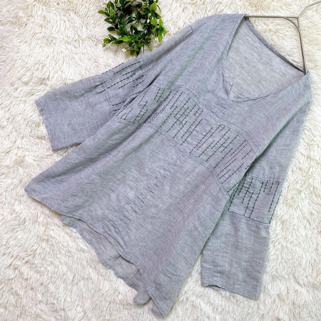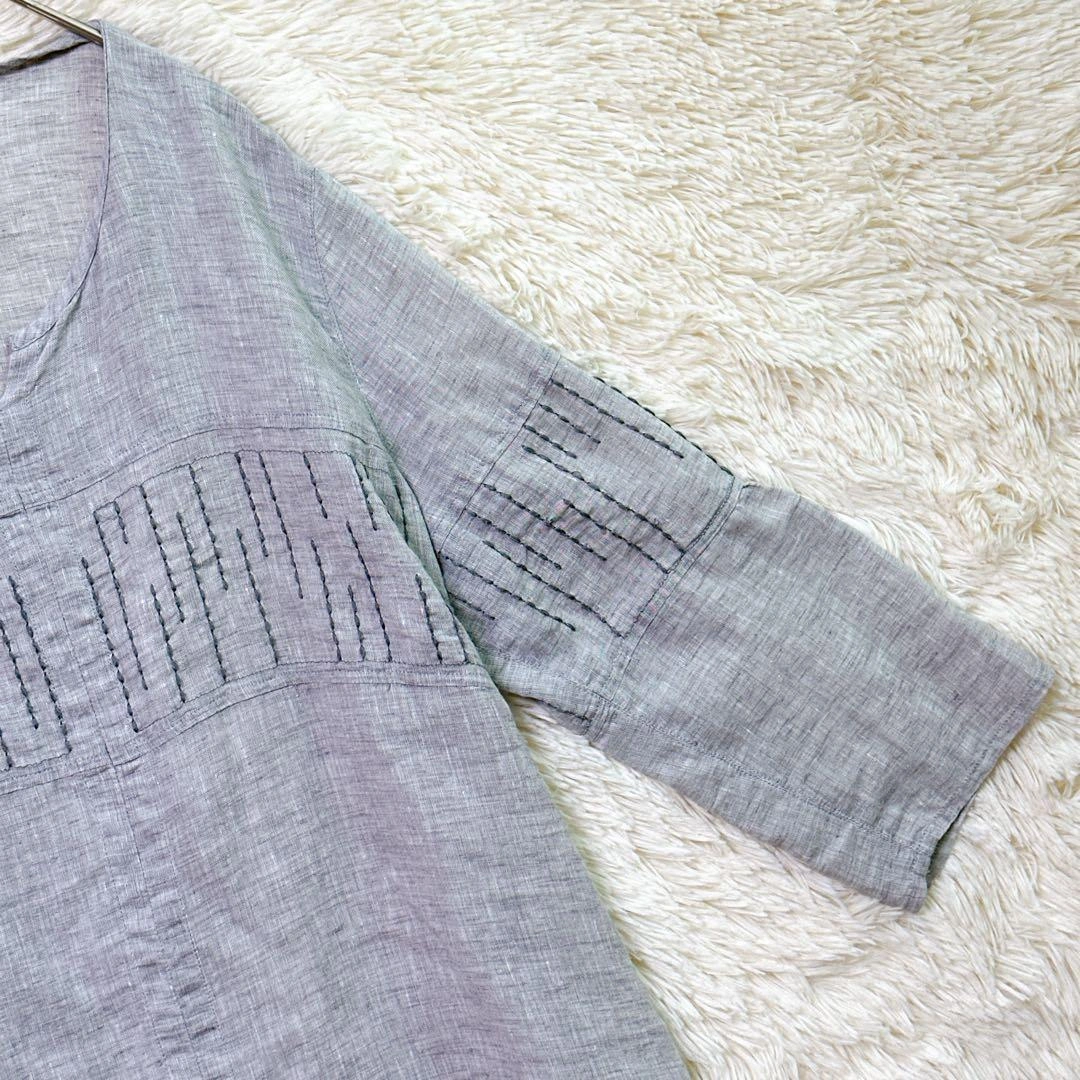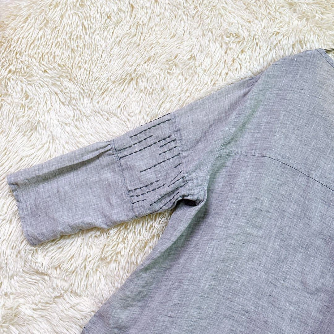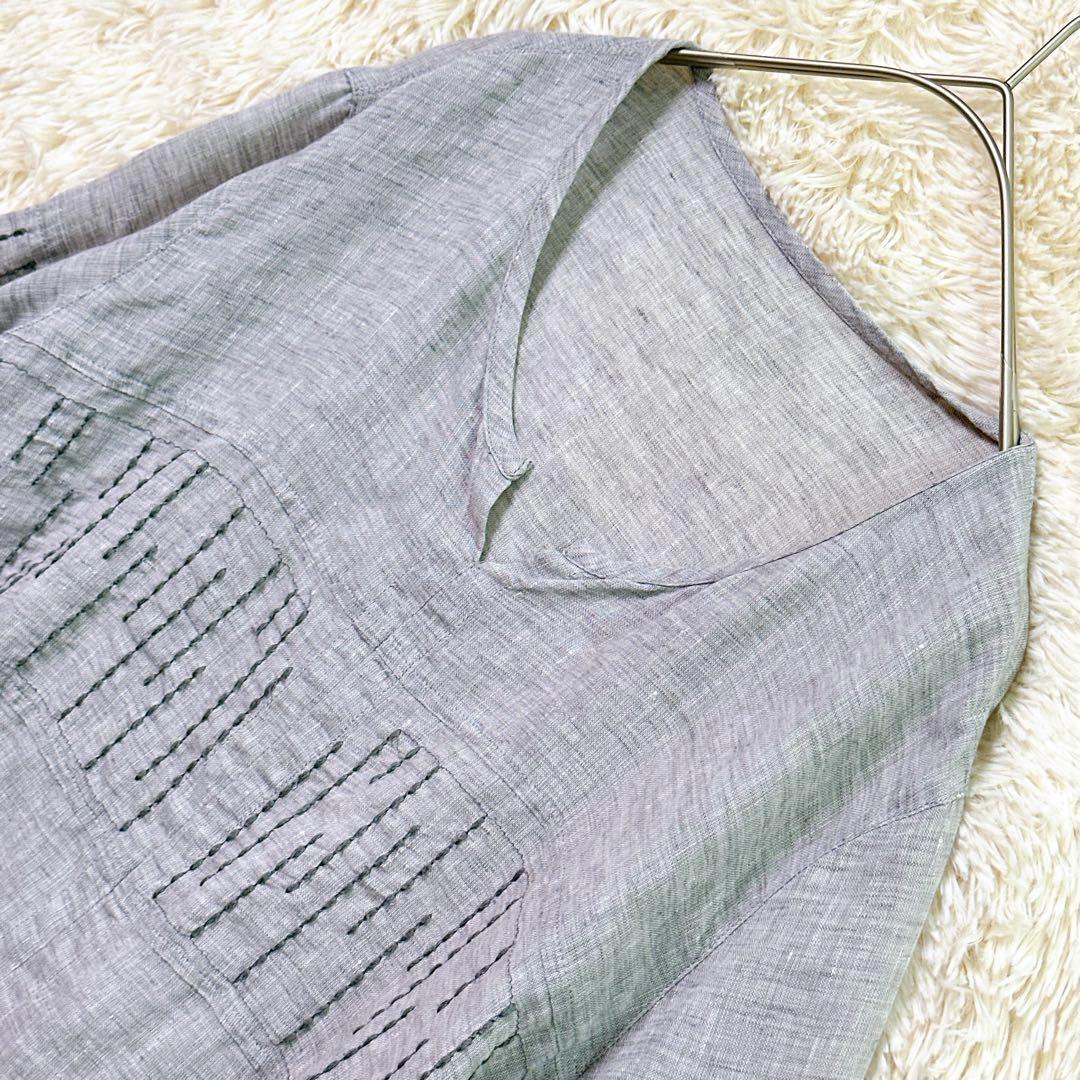 あたたかさご覧頂きありがとうございます。 GIANNI LO GIUDICE ジャンニロジュディチェのトップスです。 カラー:グレー 撮影環境の関係上、現物と違った色味の写真になる場合がございます。 素材は写真をご確認ください。 サイズ:40 (Lサイズ相当) 丈感など詳しくは寸法をご確認ください。 平置き寸法 着丈:66cm 身幅:44cm 肩幅:36cm 袖丈:52cm 素人寸法のため、若干の誤差はご了承ください。 リネン風のグレーの五分袖Vネックトップスで、刺繍デザインが特徴です。詳細は写真にてご確認ください。 万一不備がありましたら、返品対応させていただきますので、受け取り評価前にご連絡ください。 ご不明点はお気軽にお問い合わせください。
