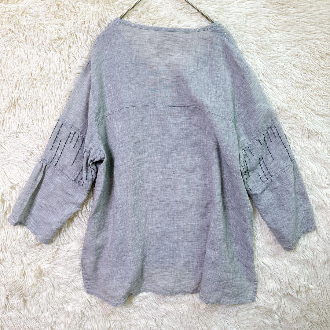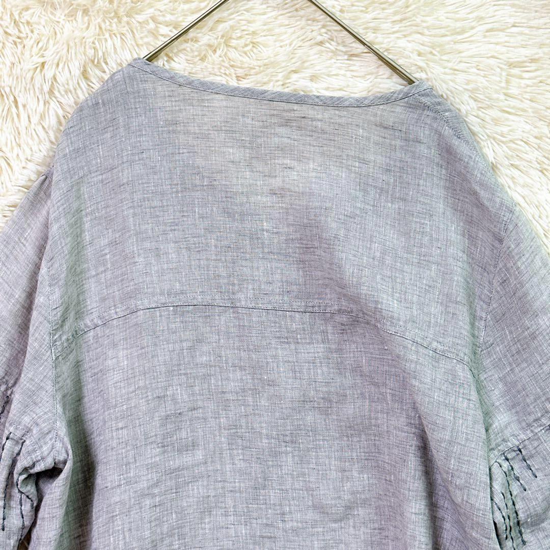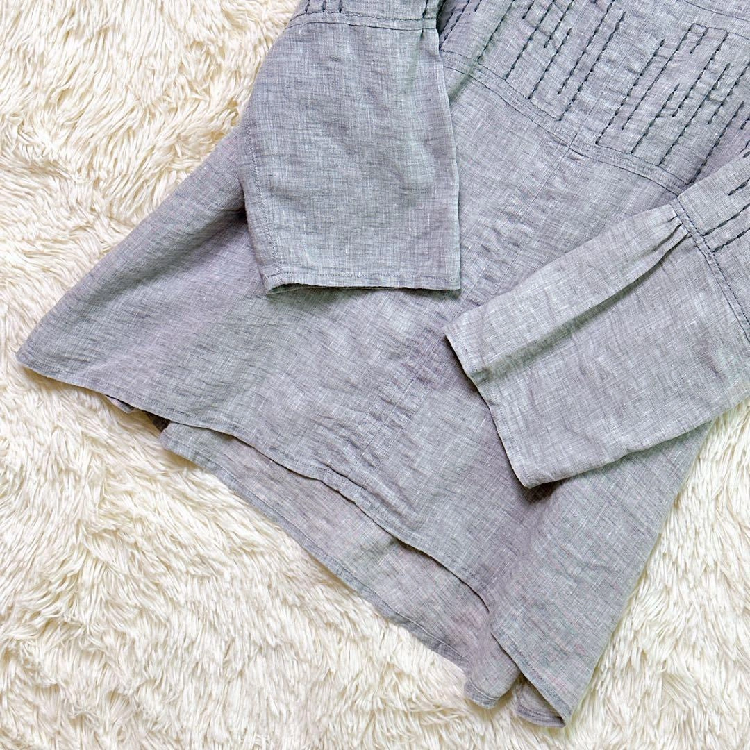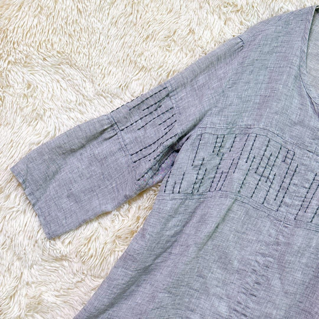 あたたかさご覧頂きありがとうございます。 GIANNI LO GIUDICE ジャンニロジュディチェのトップスです。 カラー:グレー 撮影環境の関係上、現物と違った色味の写真になる場合がございます。 素材は写真をご確認ください。 サイズ:40 (Lサイズ相当) 丈感など詳しくは寸法をご確認ください。 平置き寸法 着丈:66cm 身幅:44cm 肩幅:36cm 袖丈:52cm 素人寸法のため、若干の誤差はご了承ください。 リネン風のグレーの五分袖Vネックトップスで、刺繍デザインが特徴です。詳細は写真にてご確認ください。 万一不備がありましたら、返品対応させていただきますので、受け取り評価前にご連絡ください。 ご不明点はお気軽にお問い合わせください。