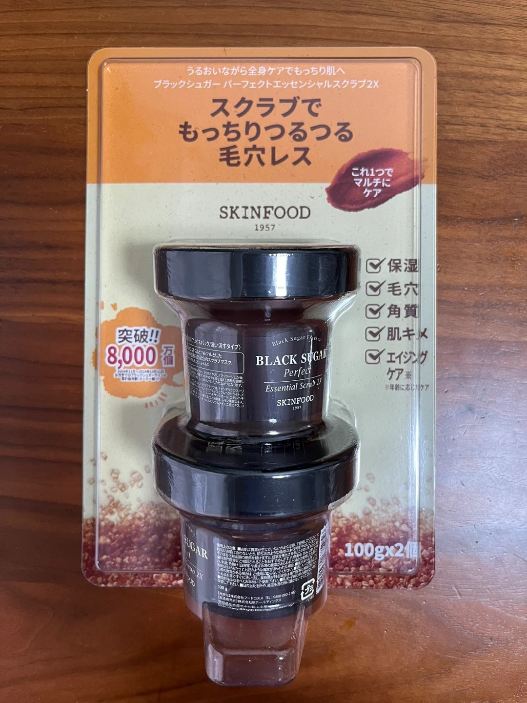 スキンフードのブラックシュガースクラブ2Xです。 【情報】 ブランド:スキンフード 商品名:ブラックシュガー パーフェクト エッセンシャル スクラブ 2X 内容量:100g×2個 【状態】 新品未開封