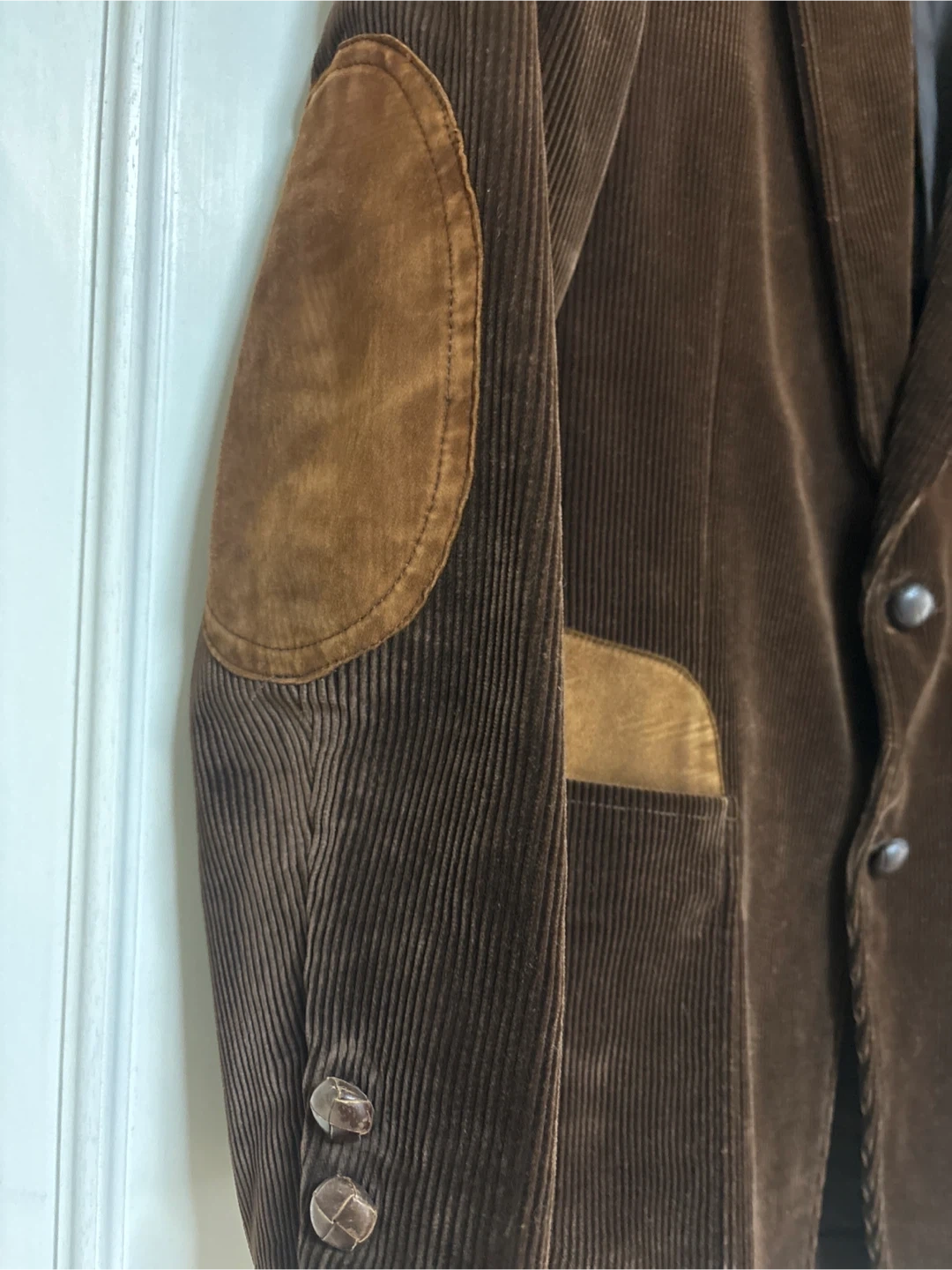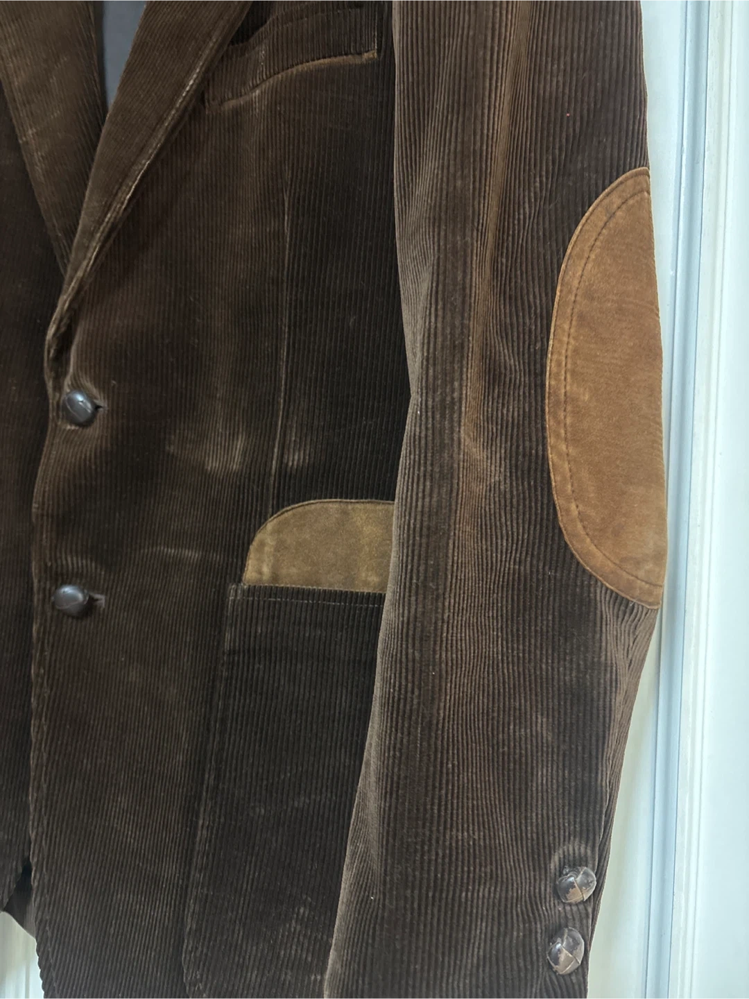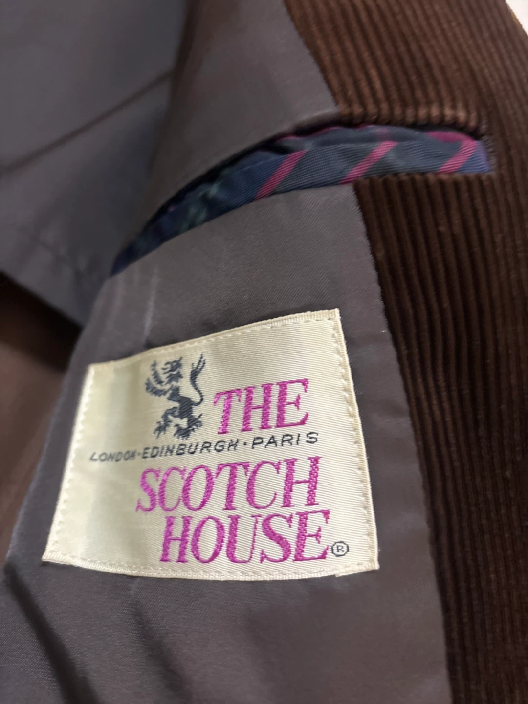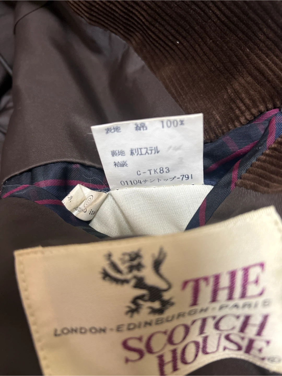 スコッチハウスのジャケットです。肘当てと,左右ポケットの上の当て布がポイントです。ゴーデュロイなので光によって色の変化するところがあります。多少の生地のスレなどありますが、そこがアンティーク、ビンテージのような感じが あります。写真に写っているようなスレはそれほどひどくありません。 しっかりした裏地付きでこれからの季節にぴったりです。 当方女性ですが大きめに着ていました。 サイズの確認お願いいたします。 肩幅42㎝ 身幅52㎝ 着丈77㎝ ポケット深さ20㎝ ・色:ブラウン ・素材:コーデュロイ ・肘当て付き ・ブランド:SCOTCH HOUSE(スコッチハウス) ご不明点があればお気軽にご連絡ください。またサイズなど不安な方はまずはご覧になってサイズ合わせてみてください。