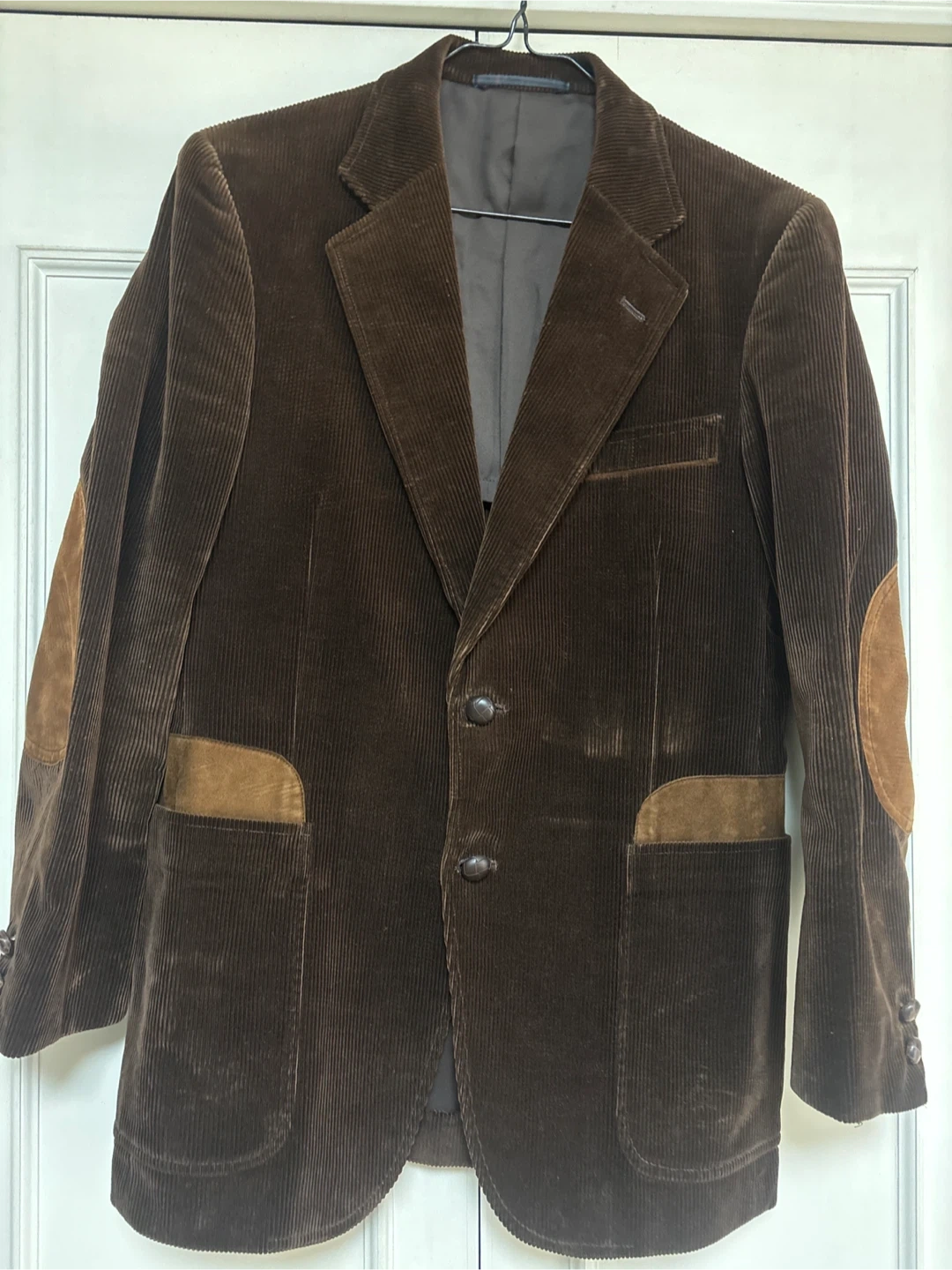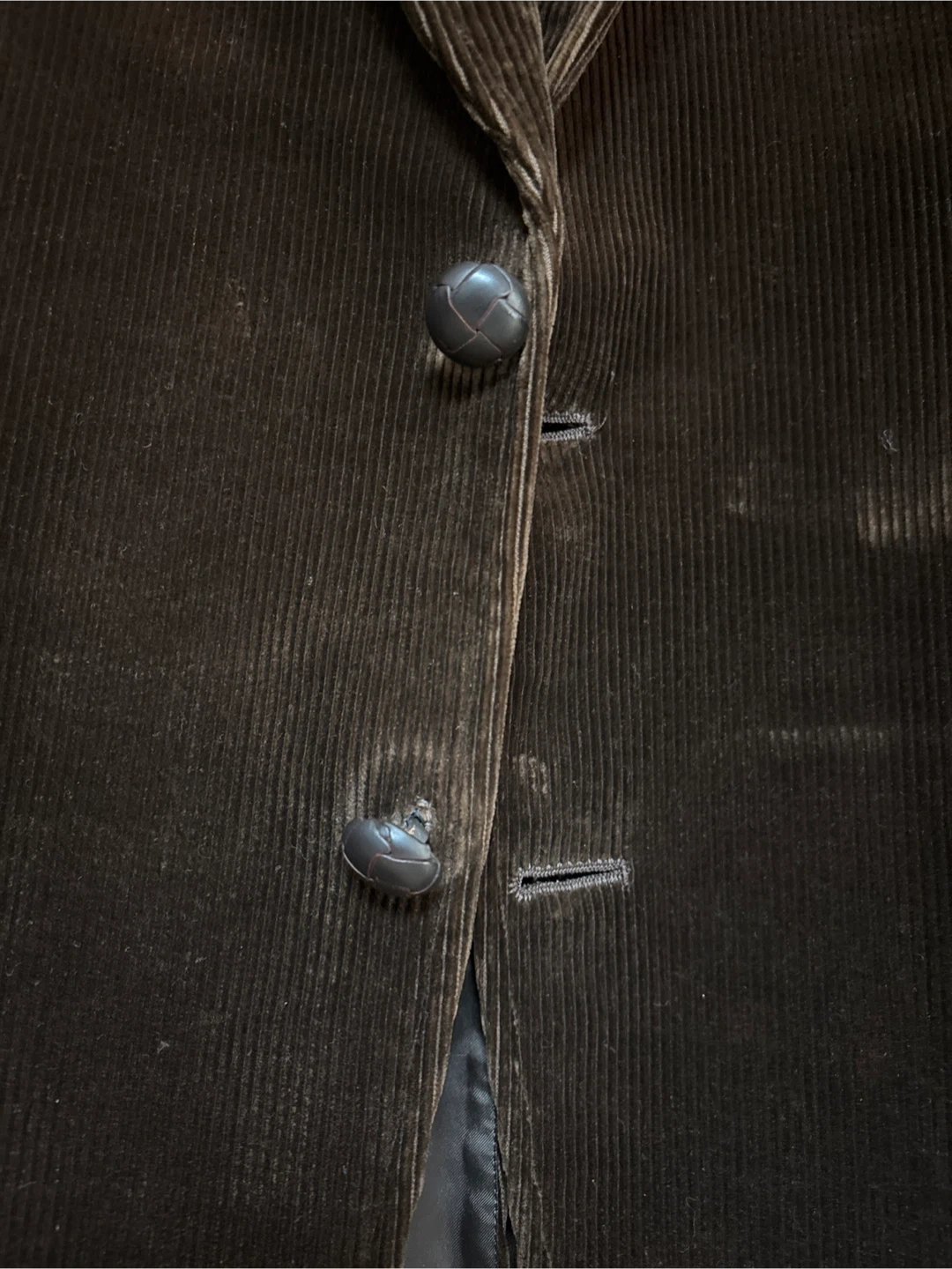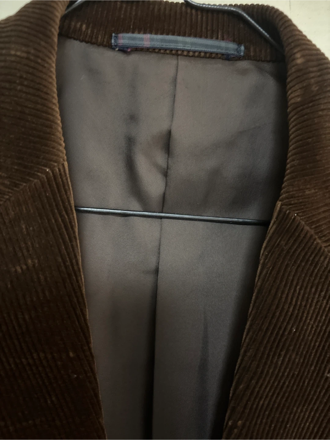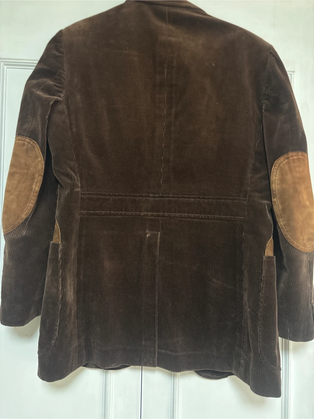 スコッチハウスのジャケットです。肘当てと,左右ポケットの上の当て布がポイントです。ゴーデュロイなので光によって色の変化するところがあります。多少の生地のスレなどありますが、そこがアンティーク、ビンテージのような感じが あります。写真に写っているようなスレはそれほどひどくありません。 しっかりした裏地付きでこれからの季節にぴったりです。 当方女性ですが大きめに着ていました。 サイズの確認お願いいたします。 肩幅42㎝ 身幅52㎝ 着丈77㎝ ポケット深さ20㎝ ・色:ブラウン ・素材:コーデュロイ ・肘当て付き ・ブランド:SCOTCH HOUSE(スコッチハウス) ご不明点があればお気軽にご連絡ください。またサイズなど不安な方はまずはご覧になってサイズ合わせてみてください。