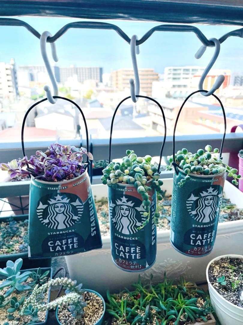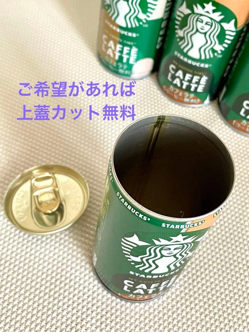 スターバックスのカフェラテ空き缶6缶です。 可愛いスタバの缶をリメイク缶にして、植物を植えたりペン立てにしたり用途はいろいろ。 私は、多肉植物を植えました。(画像5) 綺麗に洗浄したつもりですが、水滴のあとなどがある場合がございます。その場合はご了承くださいませ。 ★触っても危なくないように、上蓋をカットできます。(画像3) ご希望の方はお気軽にご連絡ください。