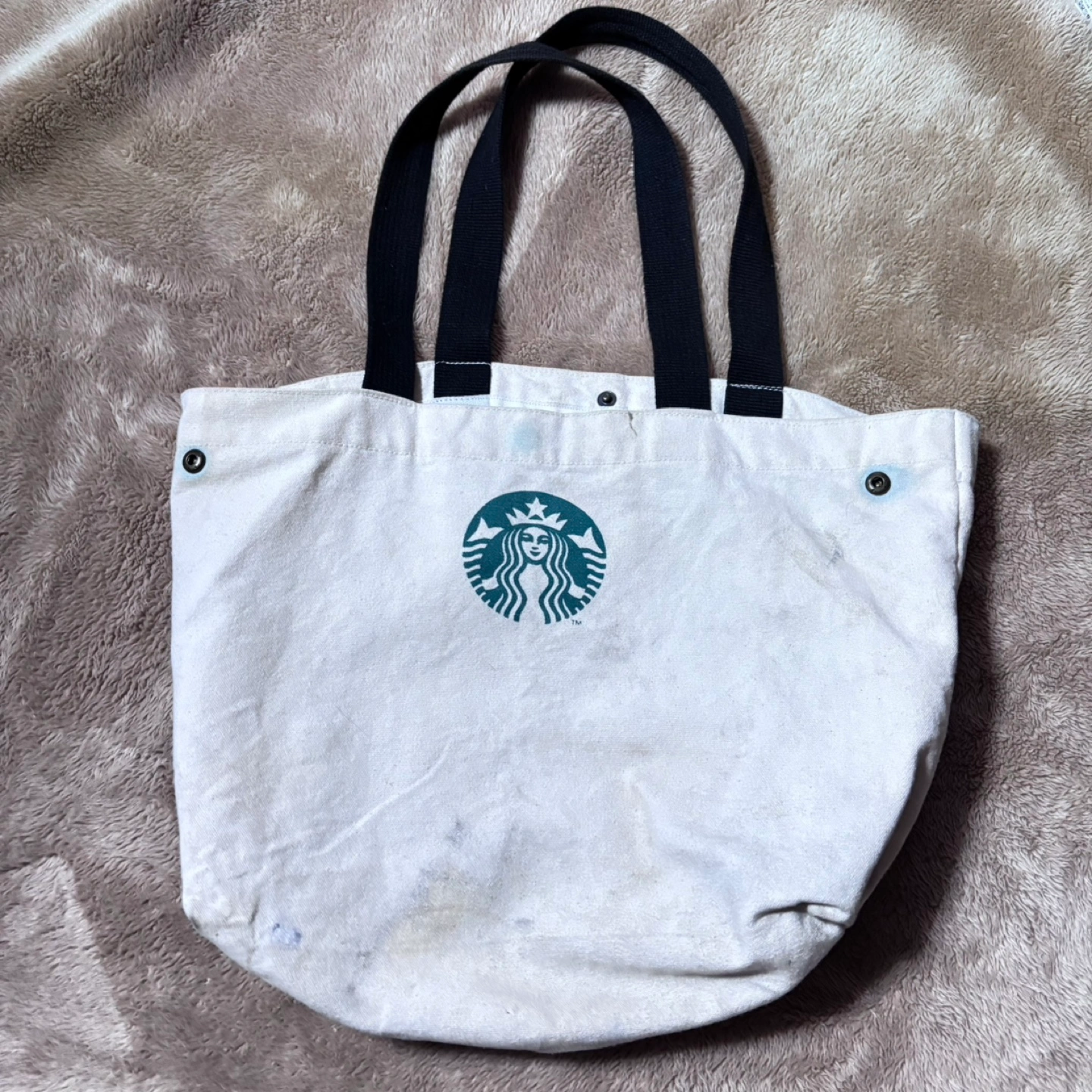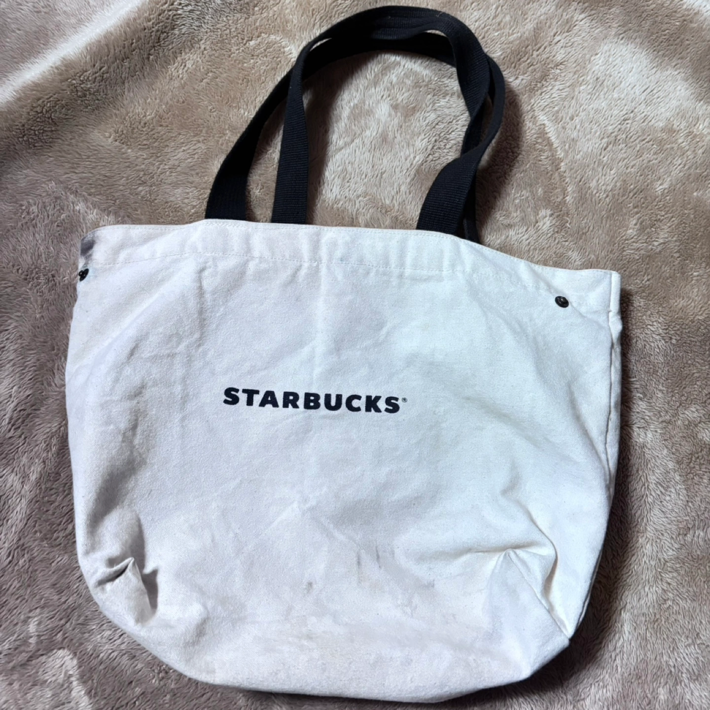 あたたかさスタバ トートバッグ 以前のスタバの福袋に入っていたトートバッグです 普段使いのトートバッグとして使用しておりましたが別のタイプのバッグばかり使っていて使わなくなったのでお譲り致します 汚れなどの使用感がありますので洗って使うなどご理解いただける方のみお問い合わせ下さい