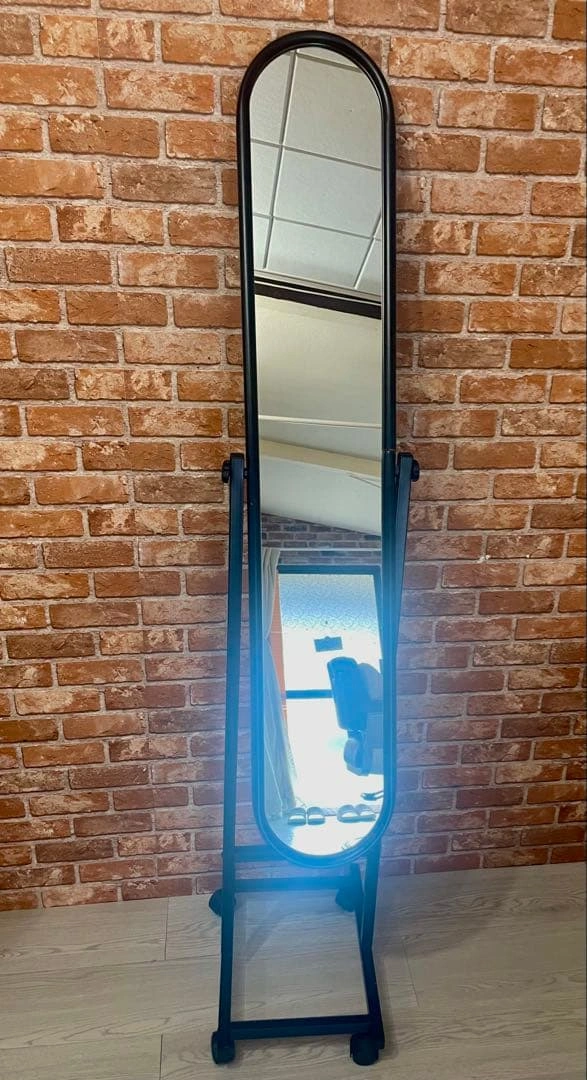 ブラックのオーバルスタンドミラーです。キャスター付きで移動が簡単です。 現状引き渡し限定になります。 使用感のある中古品ですので気になる方はご遠慮下さい。 引き渡し場所 東京都大田区 - タイプ: スタンドミラー - 色: ブラック - 形状: オーバル - ダメージ: 外枠スチール部分多数に傷、サビあり - 移動可能: キャスター付き 幅290 mmX奥行き380mmX高さ 1590mm ご覧いただきありがとうございます。