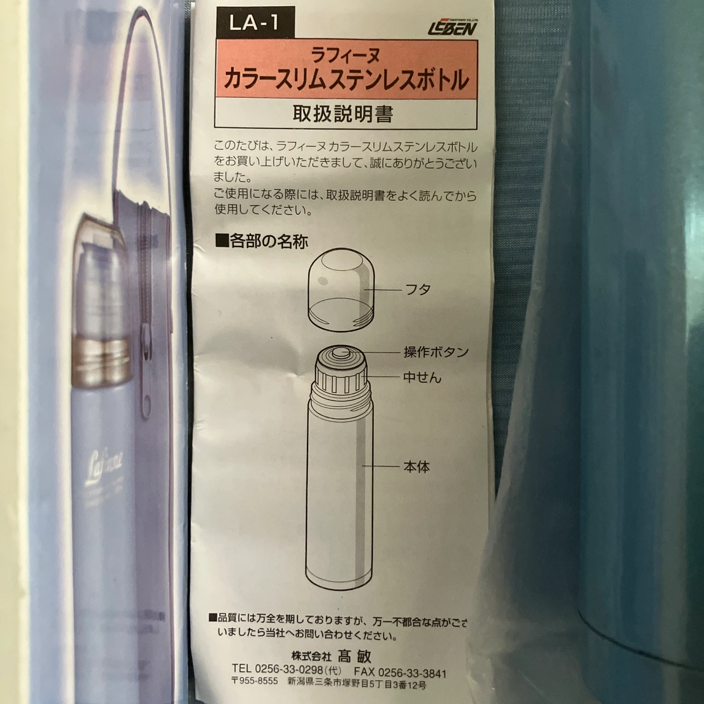 ラフィーネのスリムステンレスボトルです。 ・ブランド:ラフィーネ ・容量:250ml ・付属品:箱、説明書、ケース ・状態:未使用品 素材ステンレス ステンレスボトル 新品 ケース付き 説明書あり 底の直径5cm 高さ21cm 他にも色々出しています。