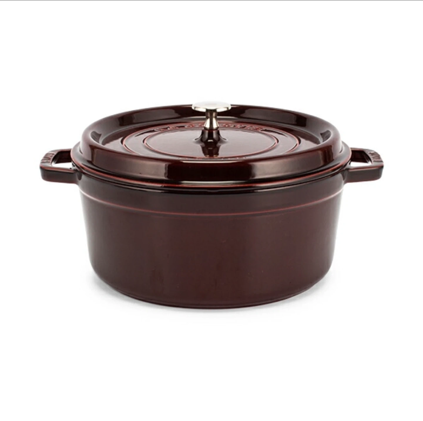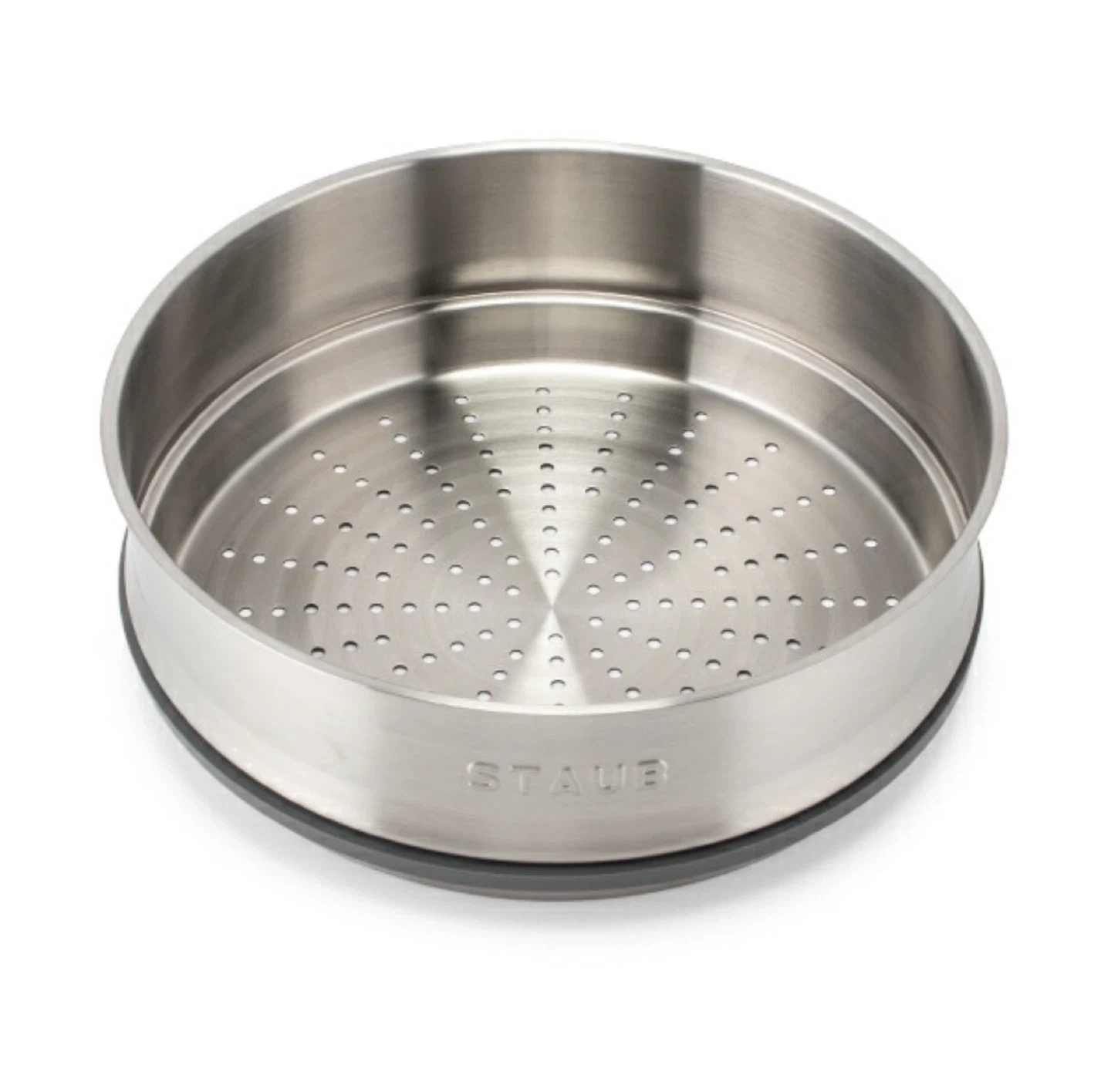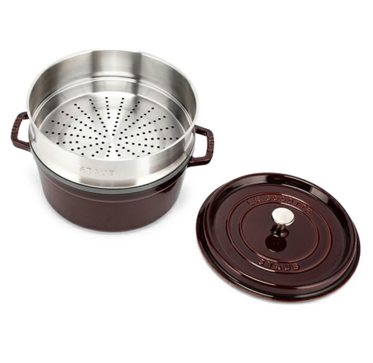 ストウブ ラウンドココット26cm 蒸し器付きのホーロー鍋です! 1度しか使ったことがなく、非常に新しいです! 便利なスチーマー付きで料理の幅が広がります! ・ブランド:ストウブ ・サイズ:26cm ・カラー:グレナディンレッド ・状態:新品から1度のみ使用。 美品ですが中古品であることはご了承ください。 ーーー [商品名] ストウブ【Staub】 ココットラウンド / スチーマーセット ラウンド 26cm Round Cocotte w/ Steamer Insert [カラー] グレナディンレッド [サイズ] トップ幅:32.5cm(両サイドの取って含む)、ボトム幅:25.5cm、高さ:20cm(鍋蓋含む) 重量:7kg 容量:5.2L 深さ:約11cm [素材] 鋳鉄ホーロー、ステンレススチール [商品について] 【特徴】 *種類:26cm鍋 *付属:同時に二つの料理も作れる便利なスチーマー付き *表面がザラザラ(黒マットエマイユ加工)している為、油が馴染みやすく焦げ付きを防ぎます。 *熱伝導・保温性に優れています。 *オーブンに使用できます。 *ガスコンロ・IH(100v、200v)・シーズヒーター・ハロゲンヒーター・オーブン・食洗器に対応します。 ※staub製品は手作りの為、色ムラ・気泡・小さな突起が見られる可能性があります。また、蓋の裏に塗装が剥げた様な跡がございますが製造過程で付くもので不良ではございません。 ■お手入れの仕方■ まずお湯をいれて洗ってください。 その後、弱火で乾燥させ、少量の植物性油を鍋の内側に塗ってください。 弱火で再度数分熱し、布やキッチンペーバーなどで余分な油をふき取ります。 油がホウロウの孔にしみこみ表面が自然に滑らかになります。 上記のお手入れを時々行ってください。 [ブランド] 【staub(ストウブ)】 フランスを代表する美食の街、アルザスで創業されたストウブ。伝統的な職人技に最新技術を加えて製造されたキッチンウェアは有名レストランのオーナーから一般家庭まで、多数のファンを生み出しています。 中でも無水調理ができる鋳物の鍋はストウブを代表する製品。現在ではヨーロッパをはじめ、日本やアメリカといった世界約50カ国に輸出され、広く愛用されています。 ーーー staub ストウブ ココットラウンド ホーロー鍋 両手鍋 スチーマー付き 蒸し器 キッチン おしゃれ かわいい 鍋 人気 調理器具 新生活