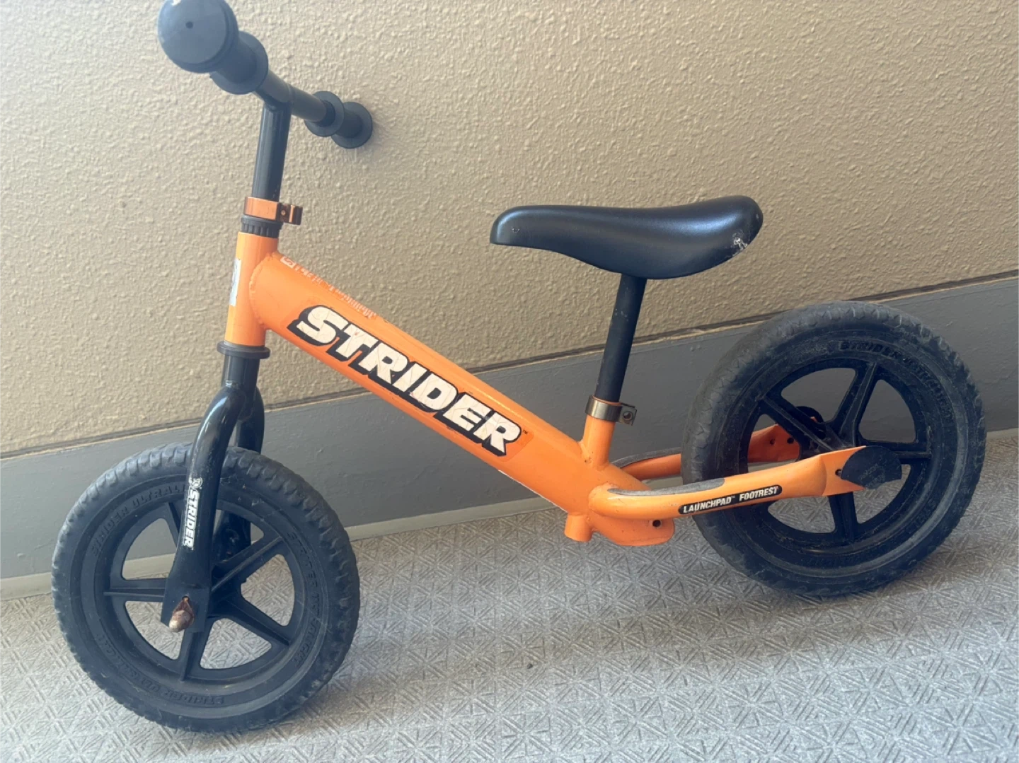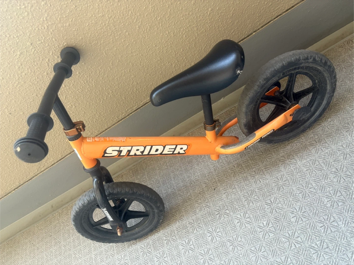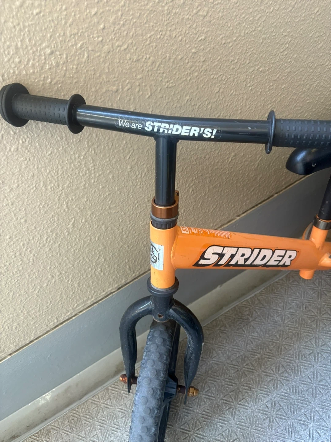 友人から譲り受けましたが、息子が5歳で体格が大きく使用するには少し小さいため出品します! サドルが上げ下げできません。 他は特に問題ありません。 公園など外で使っていたものなので使用感あります。 料金のご相談受け付けてます。 ストライダーのキッズ用バランスバイクです。 ・ブランド:ストライダー ・カラー:オレンジ ・対象年齢:1歳半~5歳 ・最大重量:27kg / 60lbs ・使用感あり 中古品であることをご了承ください。