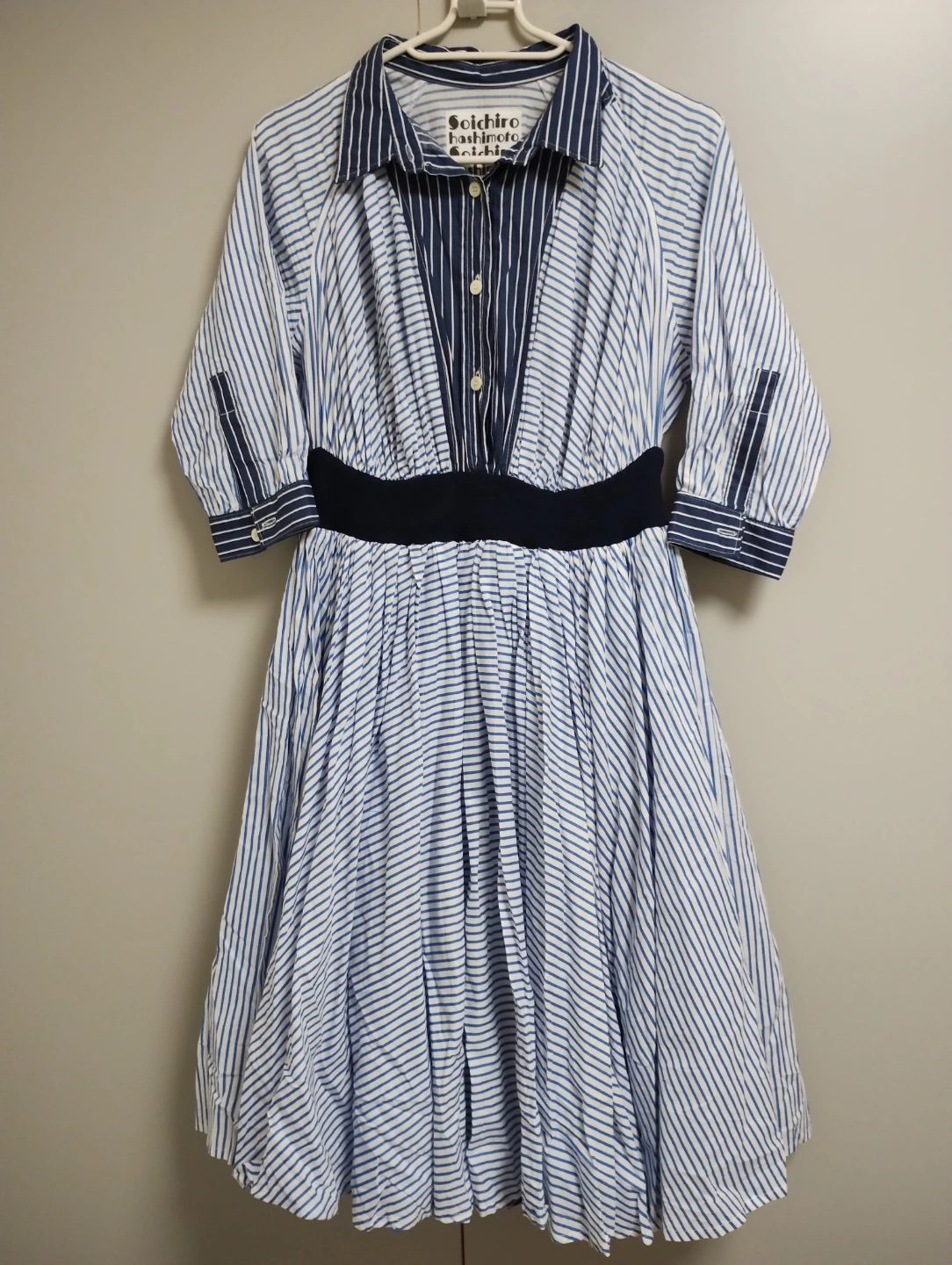 目立つ汚れや気になる点は見当たりませんでした キレイな状態だと思います ボリュームたっぷりのスカートが ロマンチックに広がるAラインワンピース。 トップのラインは細見え効果が期待できます。 ウエストゴムで引き締まりスタイルアップ効果も! オートクチュールを作るブランド Soichiro Hashimoto のワンピースです。 橋本宗一郎が手掛ける新ブランド「ソウイチロウハシモト(Soichirohashimoto)」が2017年春夏コレクションからデビュー ブランドコンセプトは「大人も小人も男子も女子も楽しめる服」 「◯に穴を3つ開けたら服になる?」と思い立ったという橋本は、デビューシーズン、"◯"をブランドコンセプトに子供から大人まで男女が着れるアイテムを展開する ウエストはゴム使用 トップに裏地なし スカートは裏地あり 七分袖 サイズ表記がないため フリーサイズとしています 丈100 身幅44 トップからウエストまでの丈40 スカート丈60 ゆき丈55 肩口囲42 シャツワンピース ミモレ丈 フロントタック ティアード ストライプ ボーダー フレア 綿100% ワンピース きれいめ 日本製