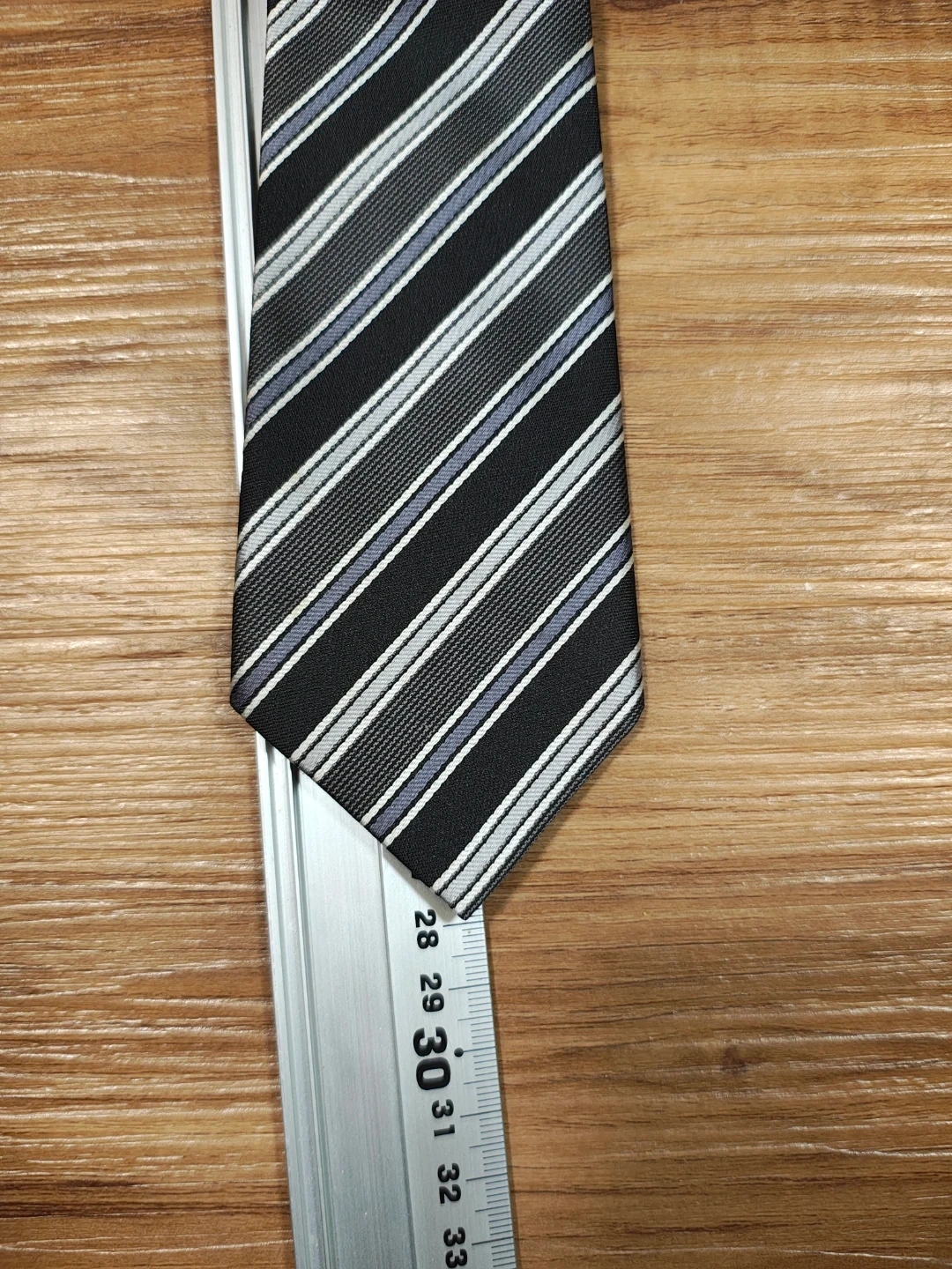 ストライプ柄のネクタイです。 長さ(28センチ) ・色:黒、グレー、白のストライプ柄 ・状態:使用感少なめ ご不明点があればお気軽にご連絡ください。 他の出品物と一緒に購入するならお安くします。 (値段交渉可) ノークレームノーリターンでお願いします。