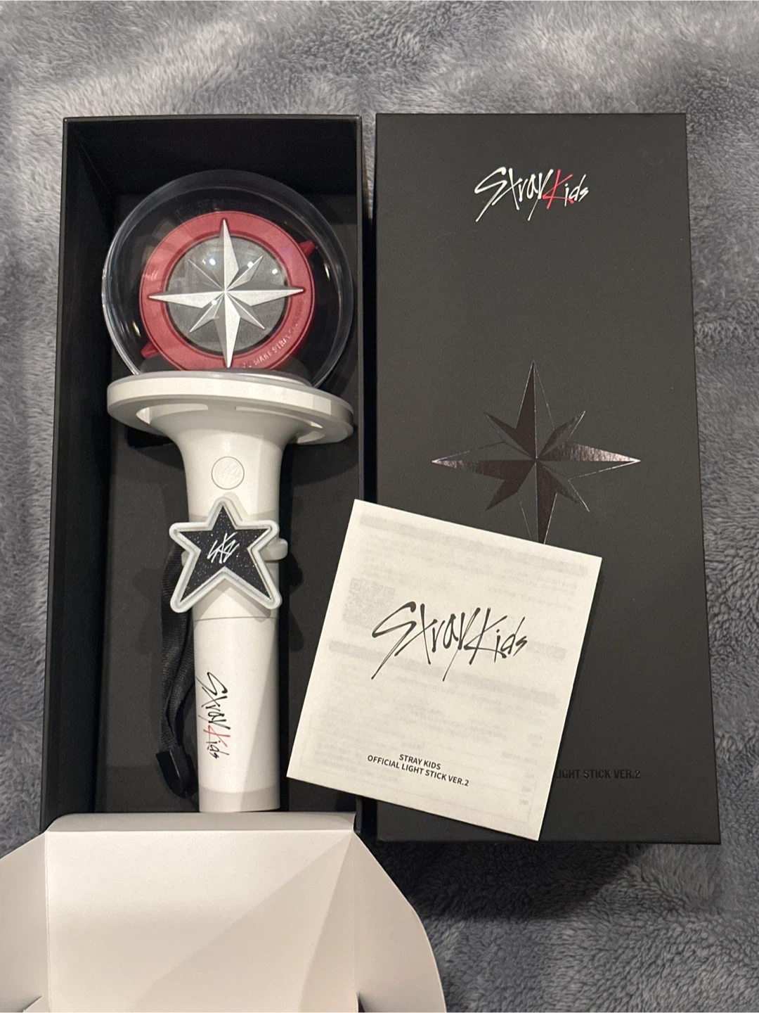 ストレイキッズのペンライトver.2です。 【情報】 ブランド:ストレイキッズ 商品:ペンライト ver.2 【状態】 未使用に近い 【付属品】 箱、説明書、その他グッズ(写真参照)