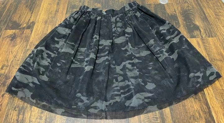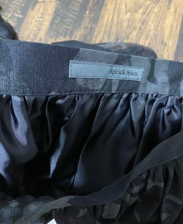 柄・デザイン···モザイク スピックアンドスパンのアーミー柄シフォンスカート、40 Lサイズです。 ゆったりめのサイズで形もとてもかわいいです。 ご希望の方はお気軽にご連絡ください。