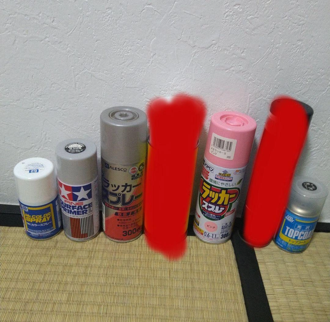 GSIクレオスMs.HOBBY水性トップコート光沢B-501、つや消しホワイト62、ラッカースプレー銀色、ファインサーフェイサーLライトグレイ、染めQブラック264ml、アスペンラッカースプレーピンク、ハイパープラサフ 300ml入りのスプレーは7割、それ以下のスプレーは3、4割残量があります。 値下げ、ばら売り可能です。ご希望の方はお気軽にご連絡ください。