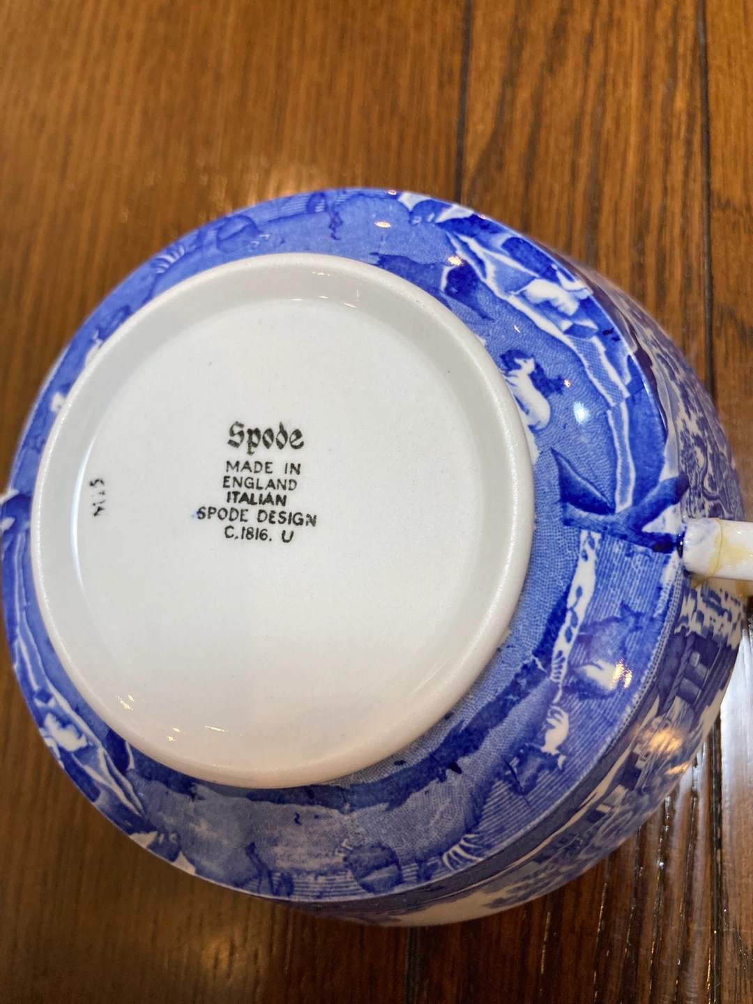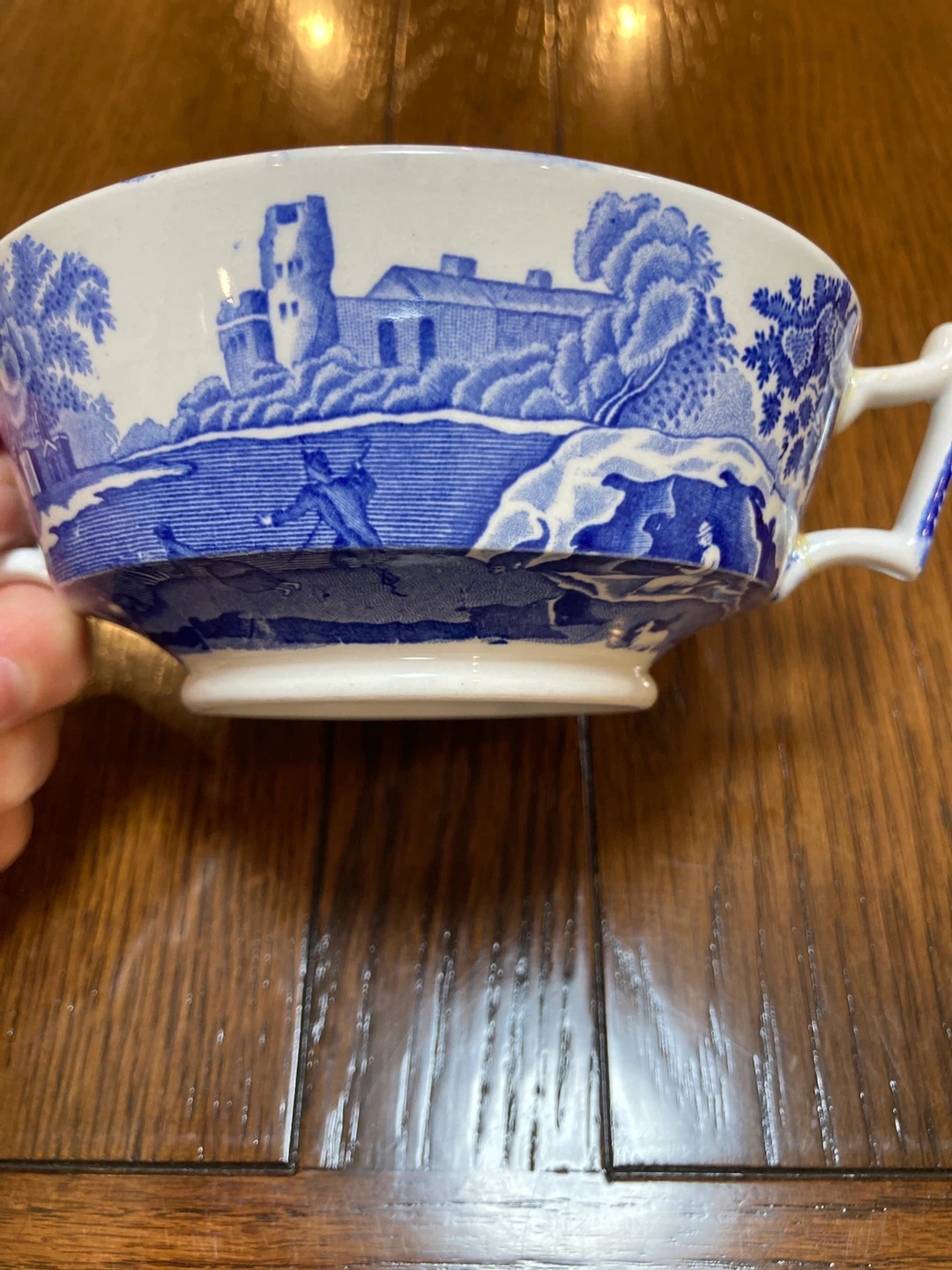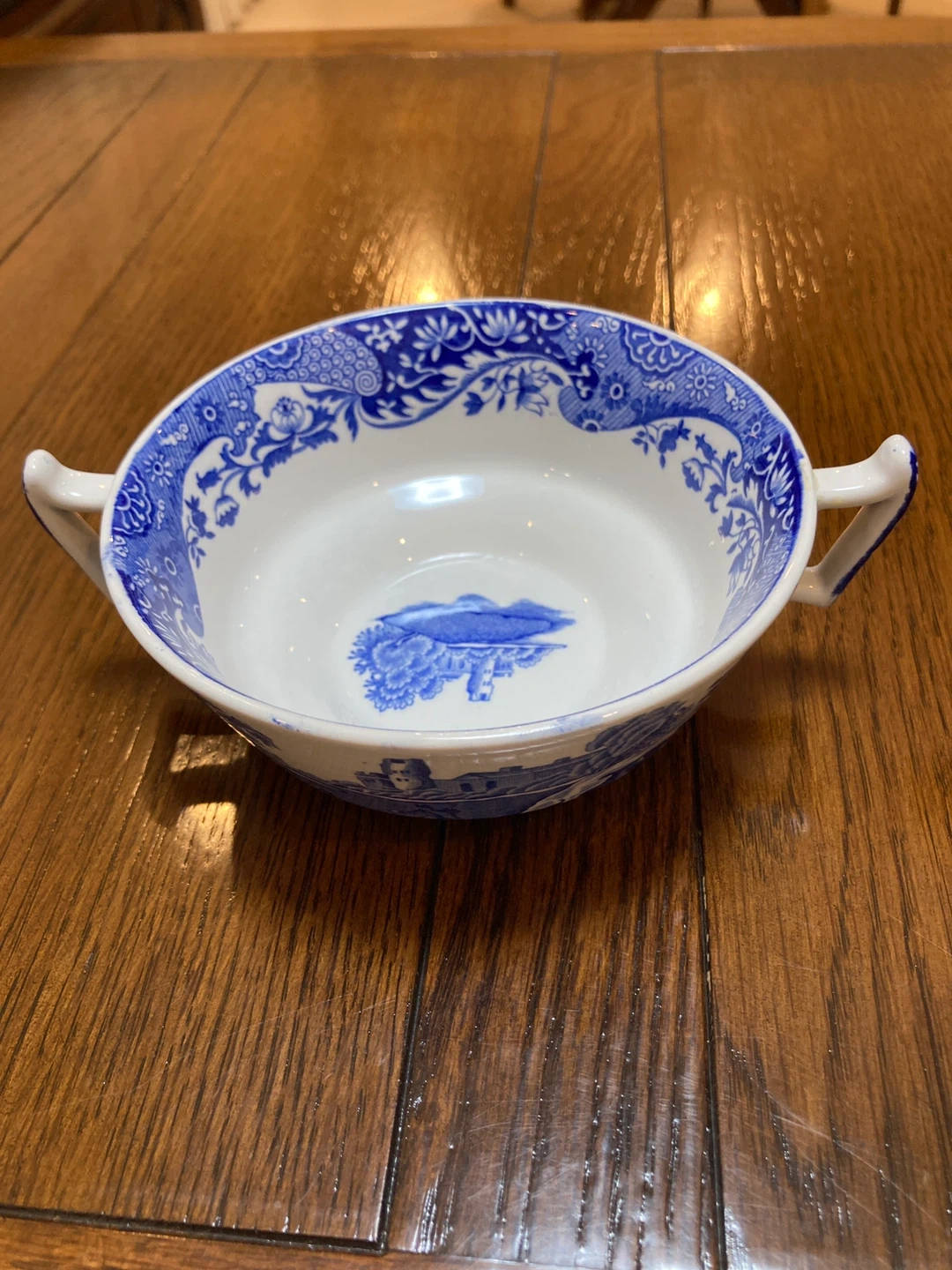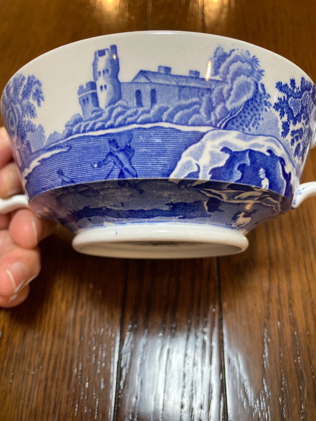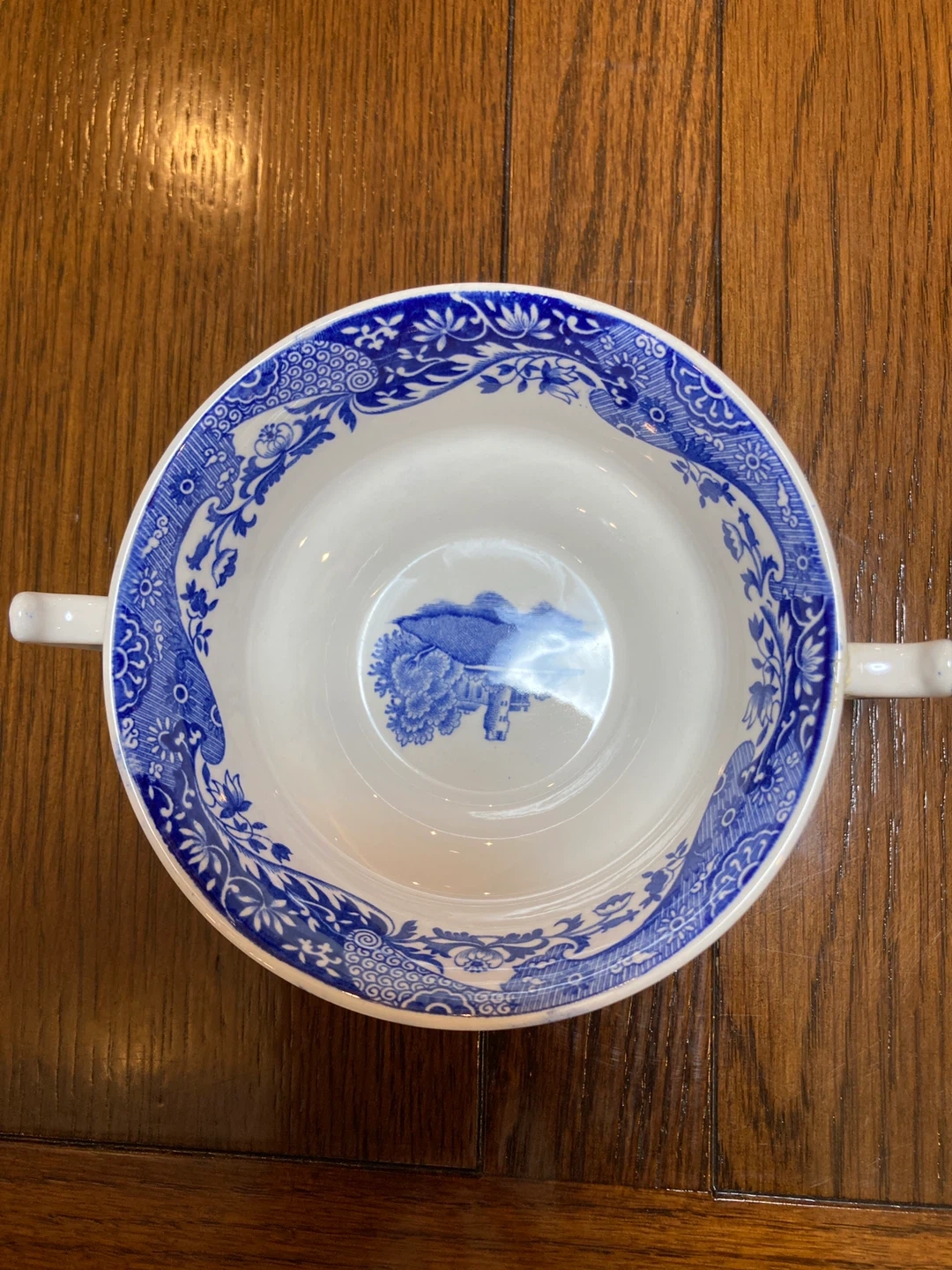 スポードのスープボウルです。 ・ブランド:スポード ・柄:イタリアン ・イングランド製 使用上問題はありませんが、片方持ち手に修復跡があります。 サイズ 口径12.5cm/深さ5cm 中古品であることをご了承ください。