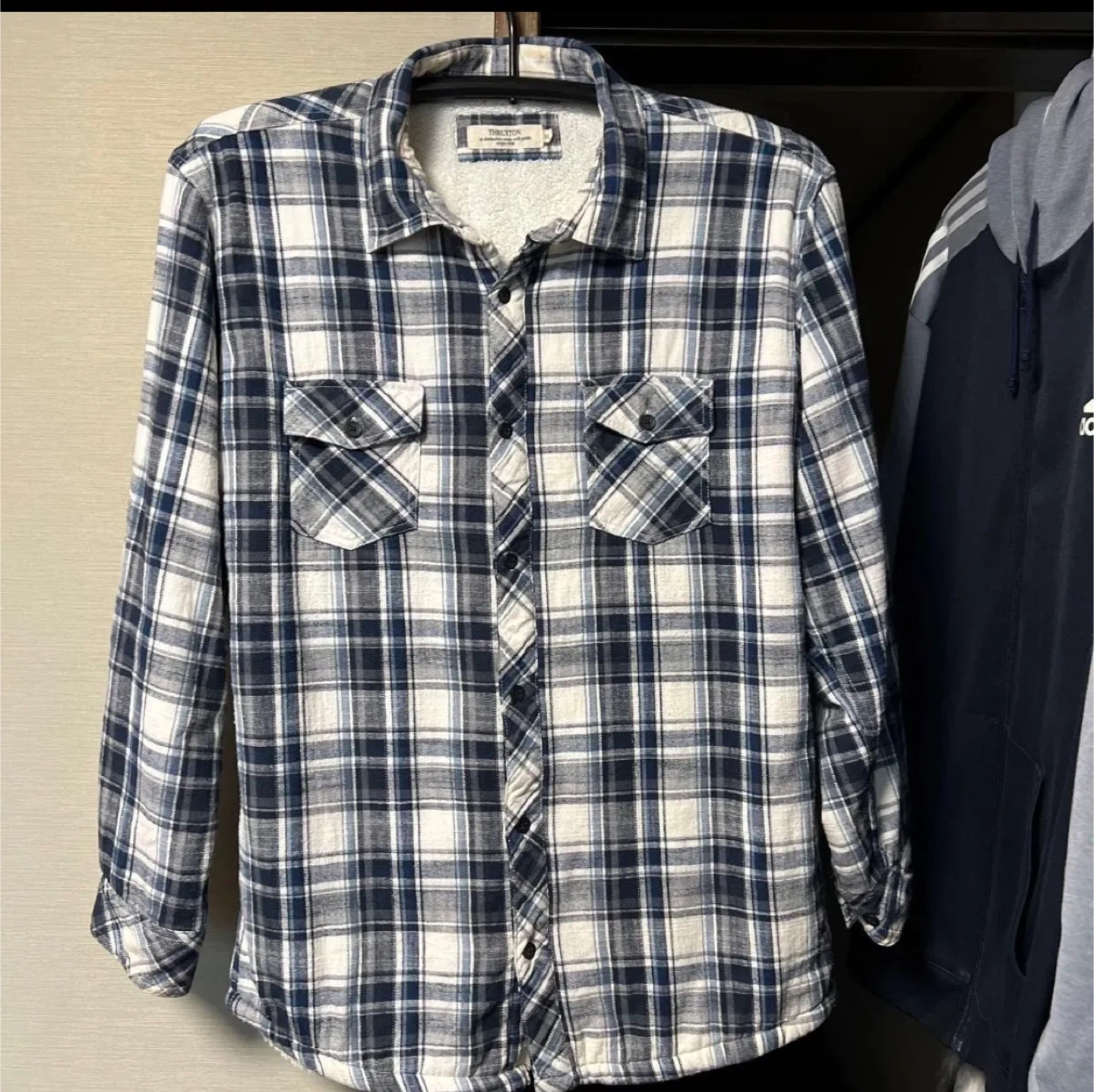 スラクトン 長袖チェックシャツ サイズ:5L 素材:表地 綿100%、裏地 ポリエステル100% 色:ネイビー、白、グレーのチェック 内側が袖までボアなのでホカホカして暖かいです 寒がりの方に是非 数回着用しようと思いましたが 暑がりにはむかないようです あくまで古着になります 購入後のクレーム、返品はお断りします