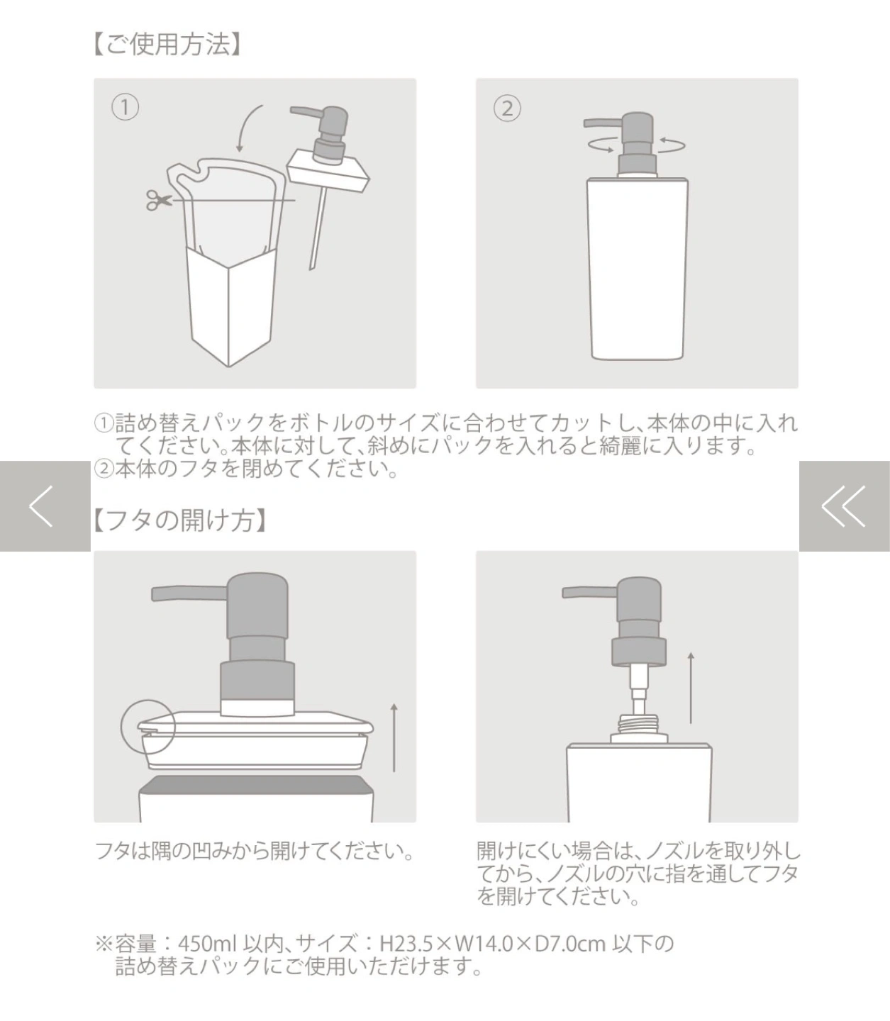 スリーコインズの詰め替え用ボトル 3点セット グレーのみ、短期間使用しました。 シャンプーなどをパッケージのまま、詰めて使えるボトルです。 ●詰め替えパックをそのまま入れて使えるので詰め替えの手間が省けるディスペンサー。 ●間口が広いのでお手入れしやすく、衛生的です◎ ●3色のカラー展開なので入れるものの種類によってカラーを変えるのがおすすめです。 《ご使用上の注意》 ※容量:450ml以内、 サイズ:約高さ23.5×幅14.0×奥行き7.0cm以下の詰め替えパックにご使用いただけます。 バラ売り不可 プロフ一読お願いします。 引き渡し場所をご確認ください。 三軒茶屋駅より距離があり、徒歩かバスになります。