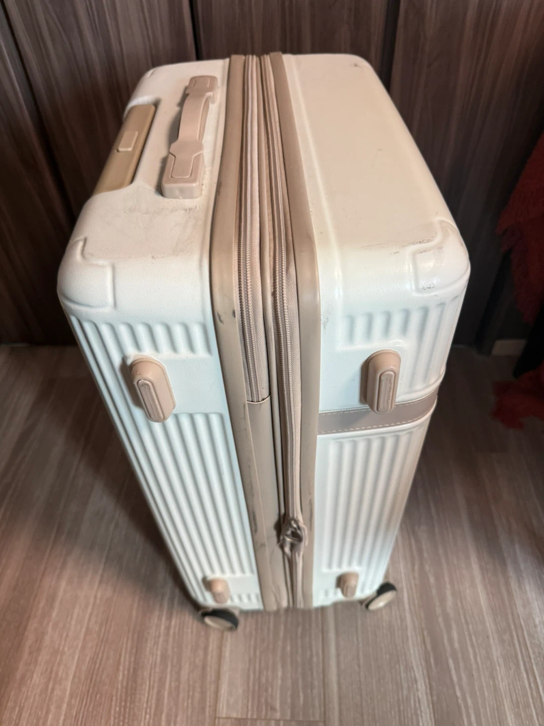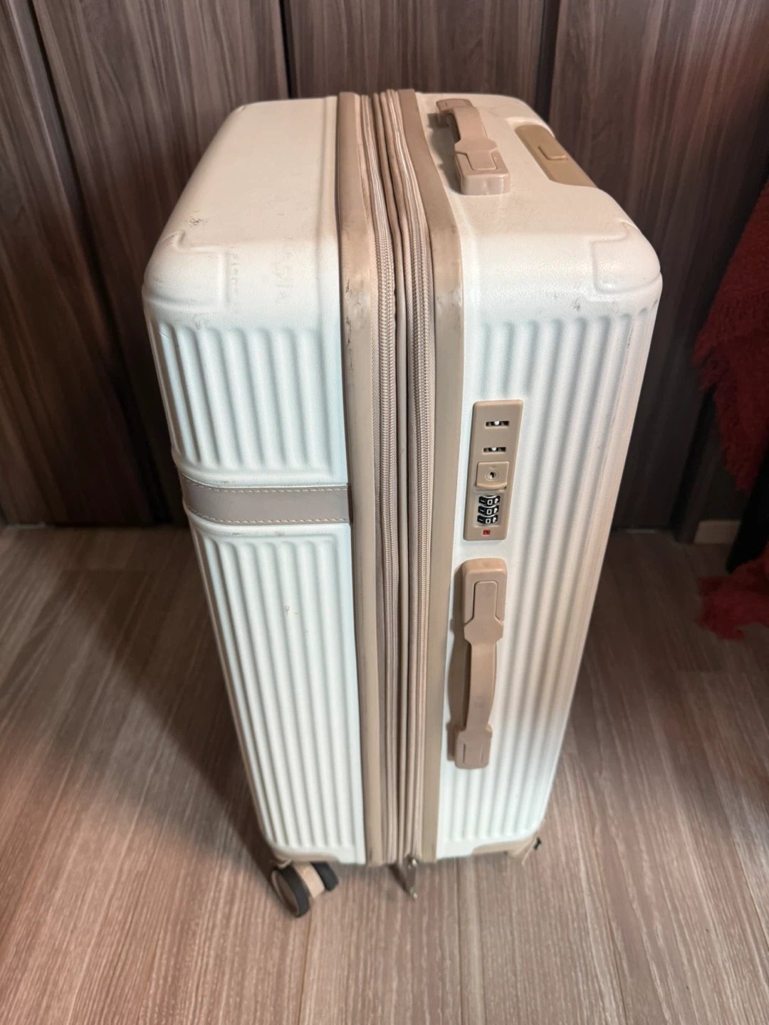 スーツケースです。 Amazonで8千円で購入しました。 一つの車輪が壊れていますが交換すれば問題なく使用できます。 拡張機能付きなので、幅広く使えます。 使用感やキズはありますが綺麗な状態だと思います。 中古品であることをご了承ください。 お値引き可能です。
