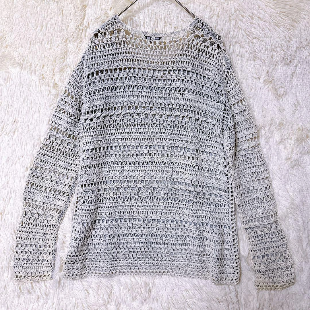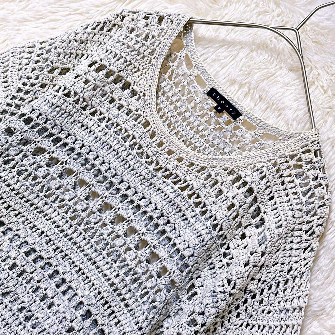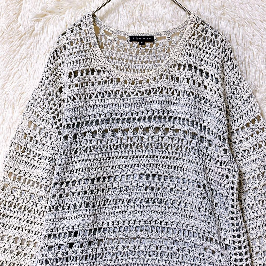 セオリー ニット 長袖 S グレー 透かし レース編み コットン100%