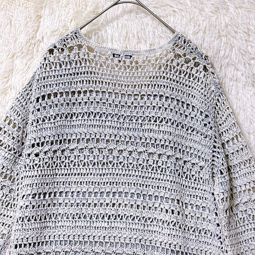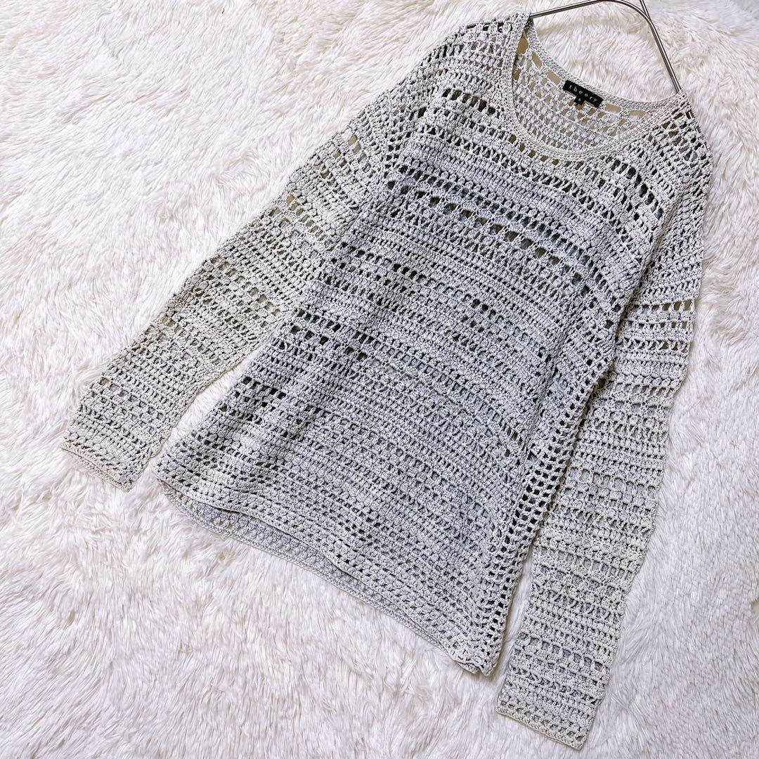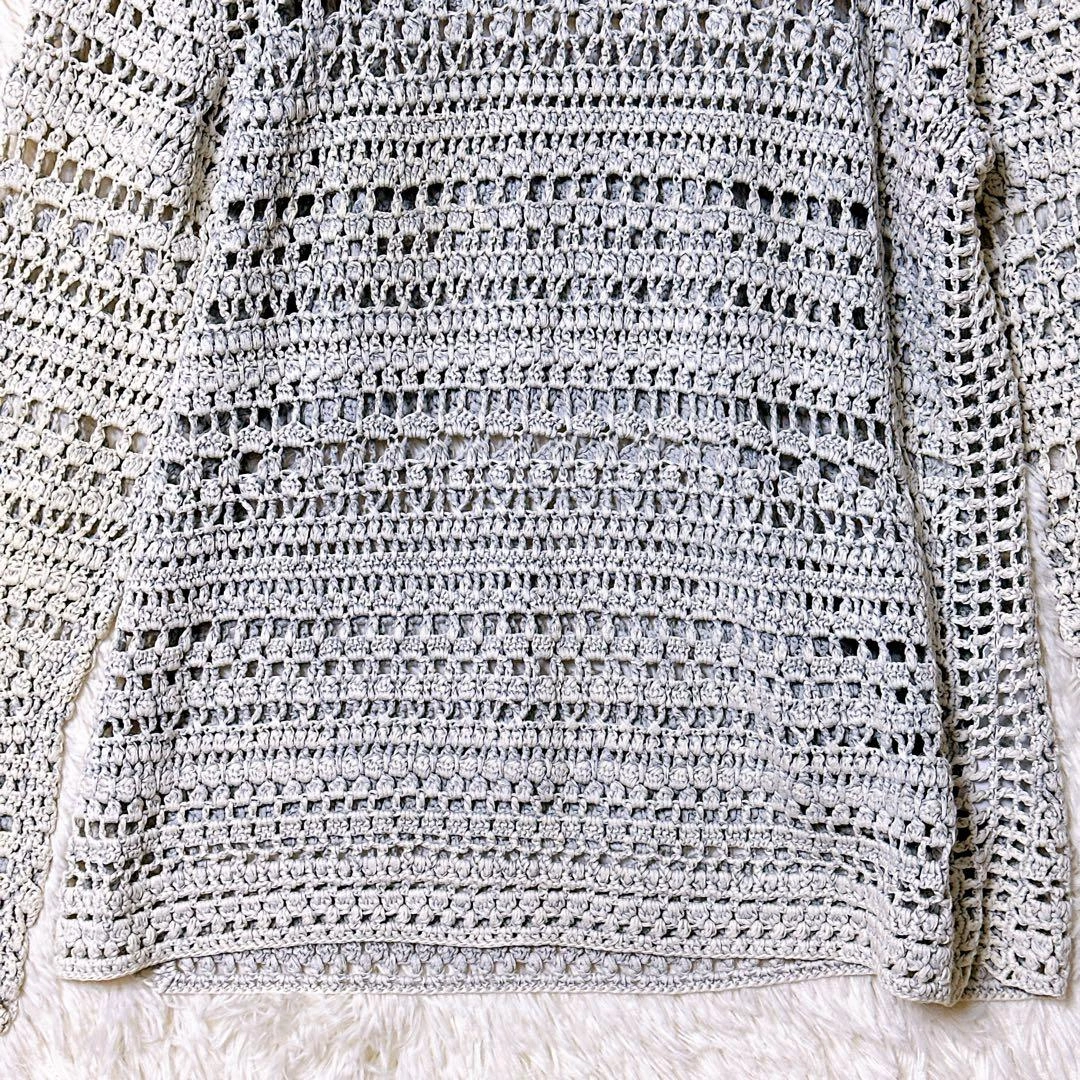 セオリー ニット 長袖 S グレー 透かし レース編み コットン100%
