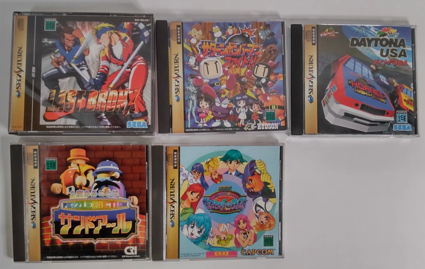 SS セガサターンソフト 下記の 5種類です。 LAST BRONX 2度あることはサンドアール サタン ボンバーマンファイト!! QUIZ なないろDREAMS 虹色町の奇跡 DAYTONA USA 全品 起動まで確認しました。 断捨離のため 放出します。 ジャンク品であることをご理解の上 ノークレームノーリターンで 応札 狙います。 受け渡し場所は JR 川崎駅 中央改札口でもOK