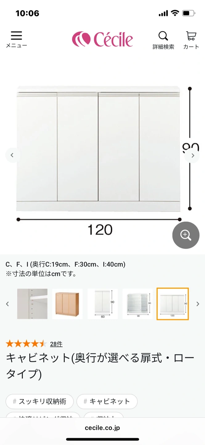 セシールのキャビネット(ロータイプ)です。 ・奥行き:40cm ・幅:120cm ・高さ:90cm 新品価格は30,800円(税込)です。 中古品であることをご了承ください。 受け渡し場所はご相談のうえ。