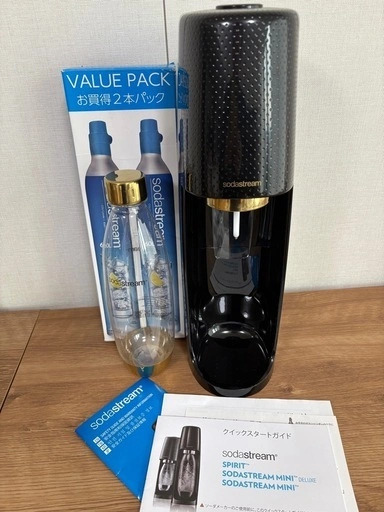 ・ソーダストリーム本体 ・ボトル ・ガスシリンダー(使用中) ・ガスシリンダー(空) 一式をお譲りします。 空のガスシリンダーがあることによって、次回「交換用」をお安く購入できます。 近くまで取りに来ていただける方にお譲りします。 中古品ですので、ご理解ある方のご購入をお願いします。