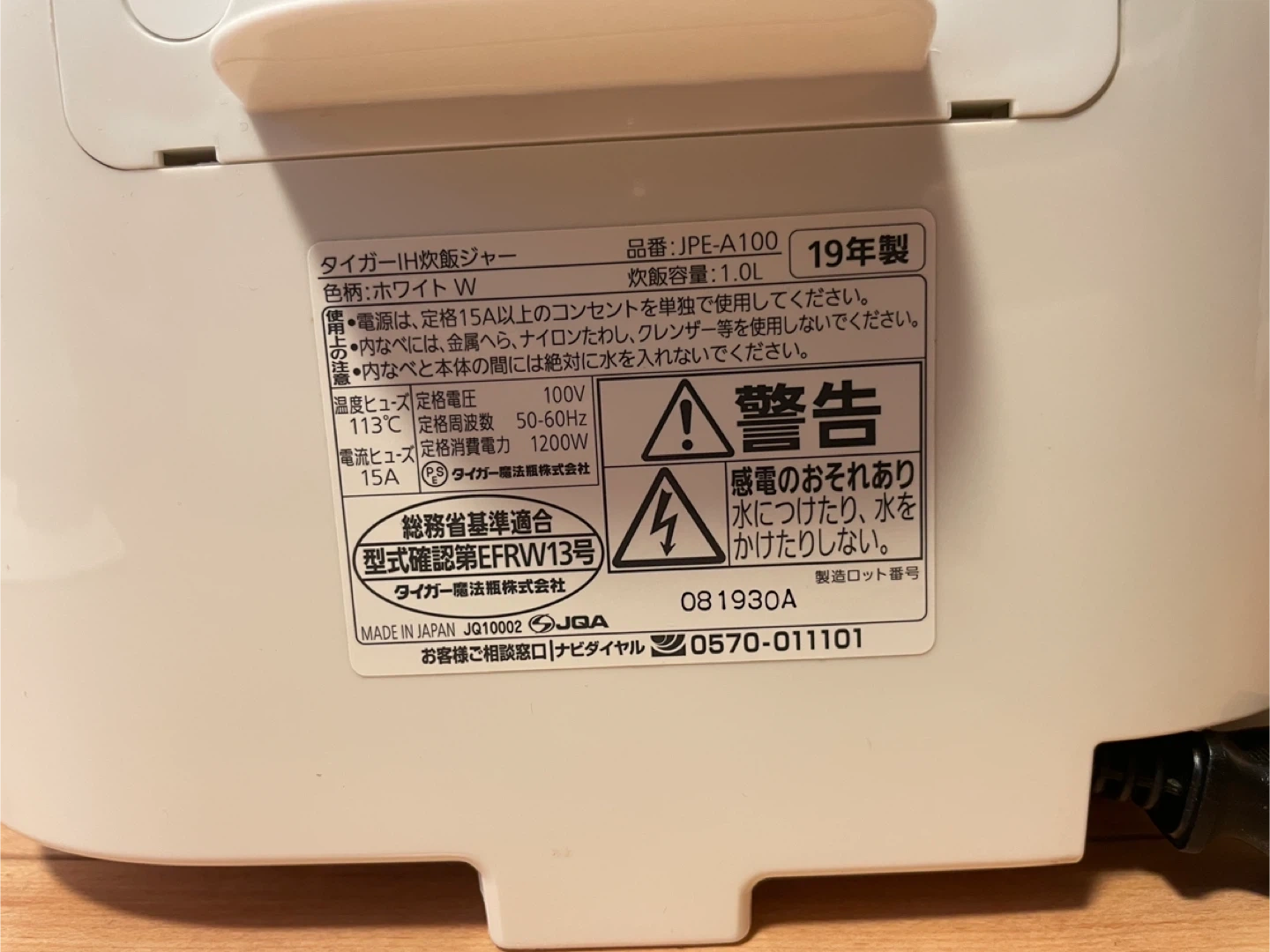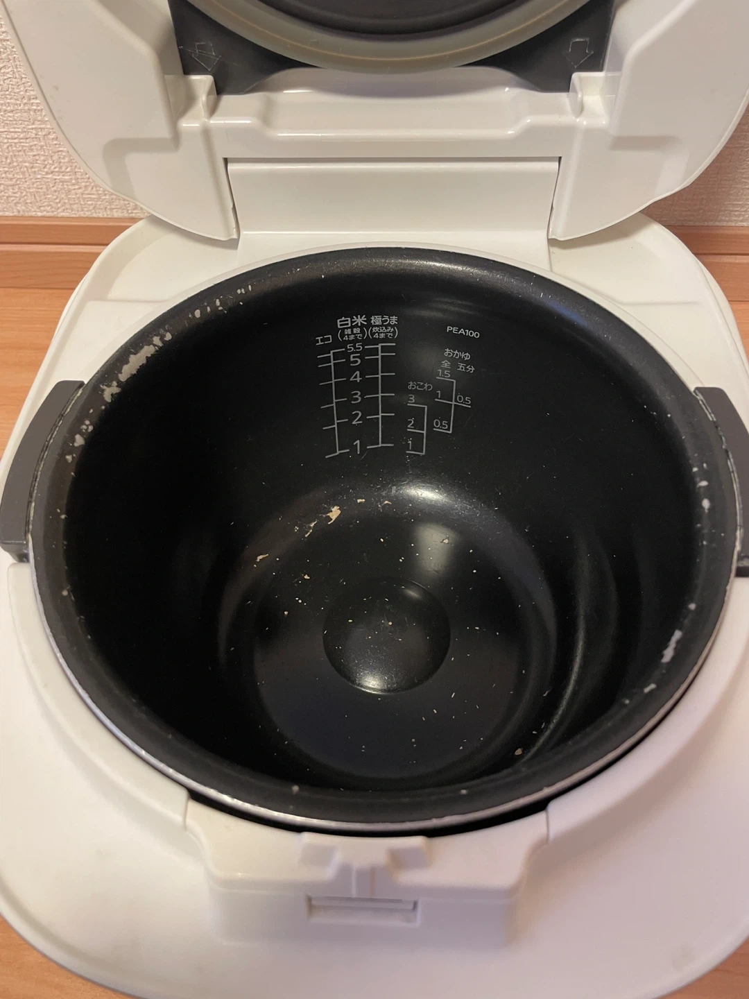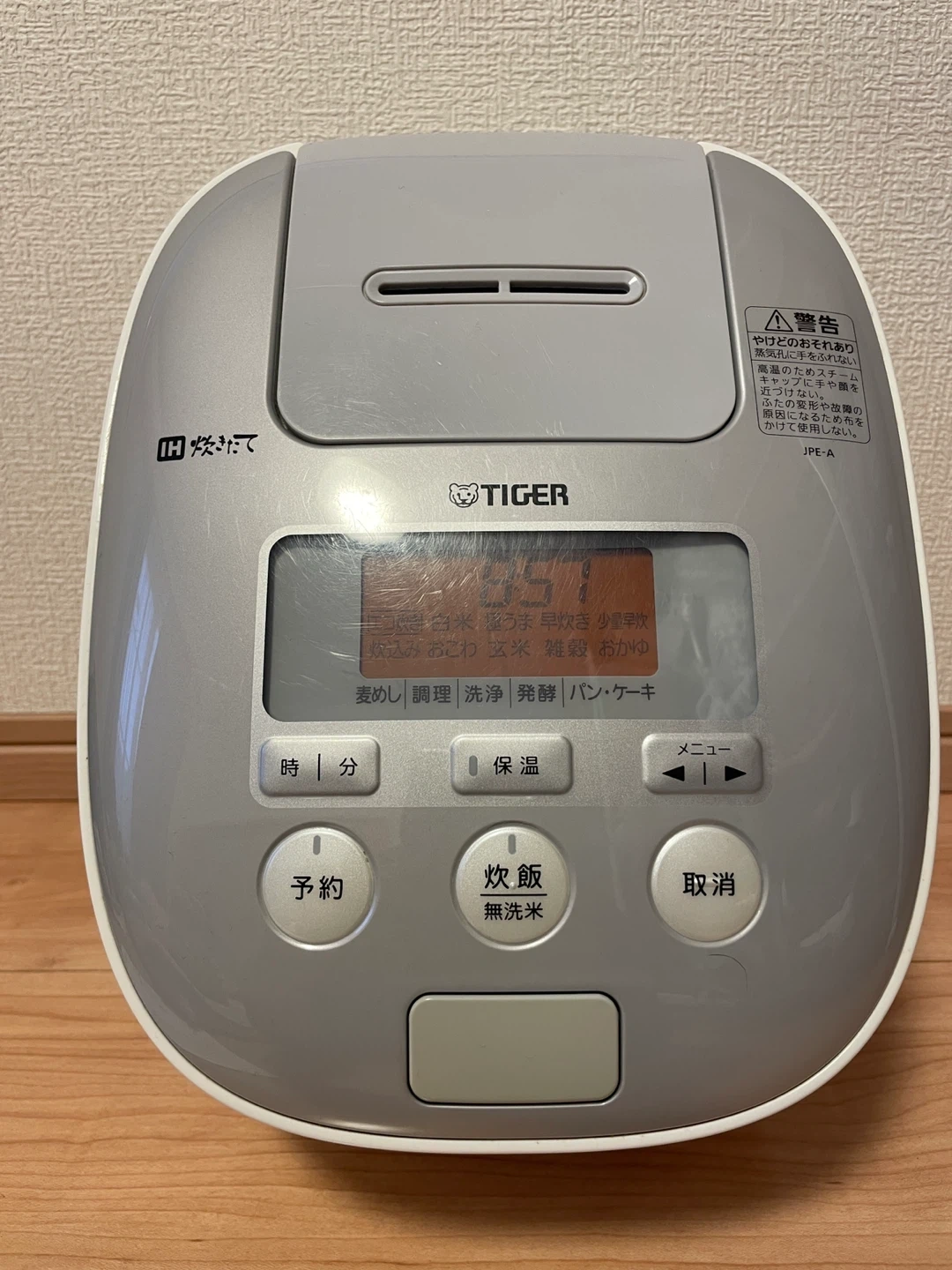 つい先日まで我が家で使っていて、毎日美味しいお米を炊いていた炊飯ジャーです。 応募していた懸賞で予想外に新しい炊飯器が当たったため、こちらの品物が不用になりました。 毎日使っていましたので、 内蓋、内釜に使用感はありますが、 問題なく美味しいお米を炊けていました。 我が家は3人家族のため2台は必要なく、 欲しい方、必要な方にお譲りします。 家族が多い方、飲食店の方、寮や、その他セカンド炊飯器としてご利用ください。 タイガーのIH炊飯ジャーです 【情報】 ブランド:タイガー 型番:JPE-A100 容量:1.0L 年式:19年製 カラー:ホワイト 【状態】 使用感あり 内釜にキズ、剥がれあり 【付属品】 計量カップ 中古品であることご了承ください
