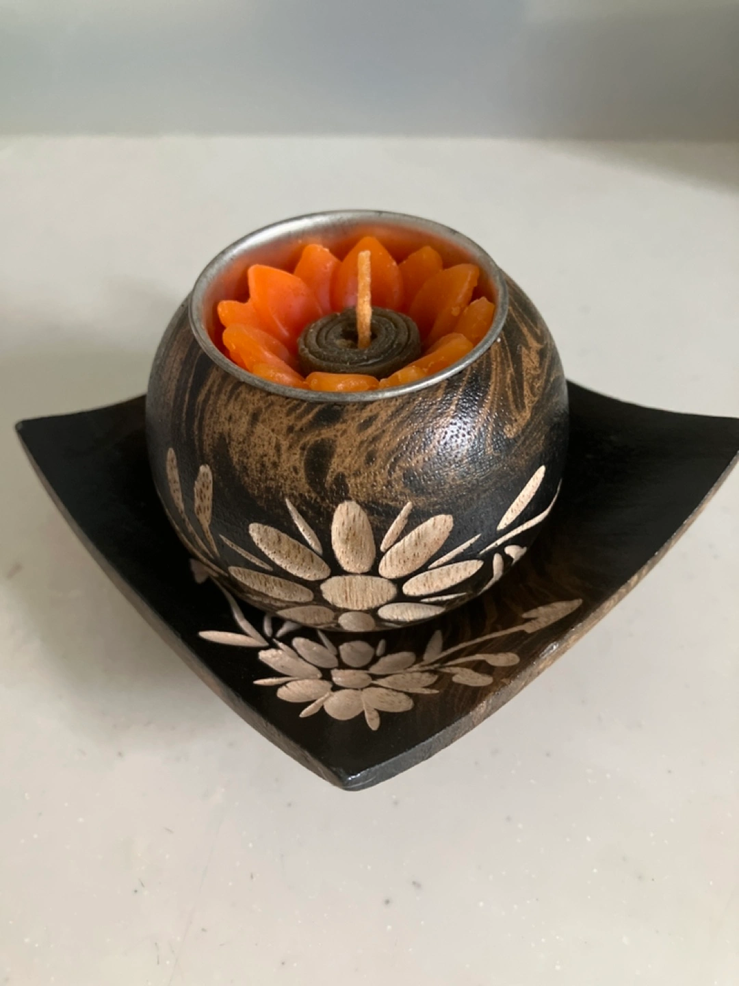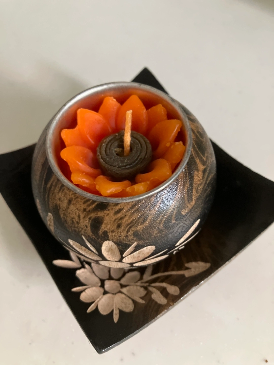 タイ🇹🇭 木製の台座付きキャンドル  1000円以上ご購入の方には差し上げます。