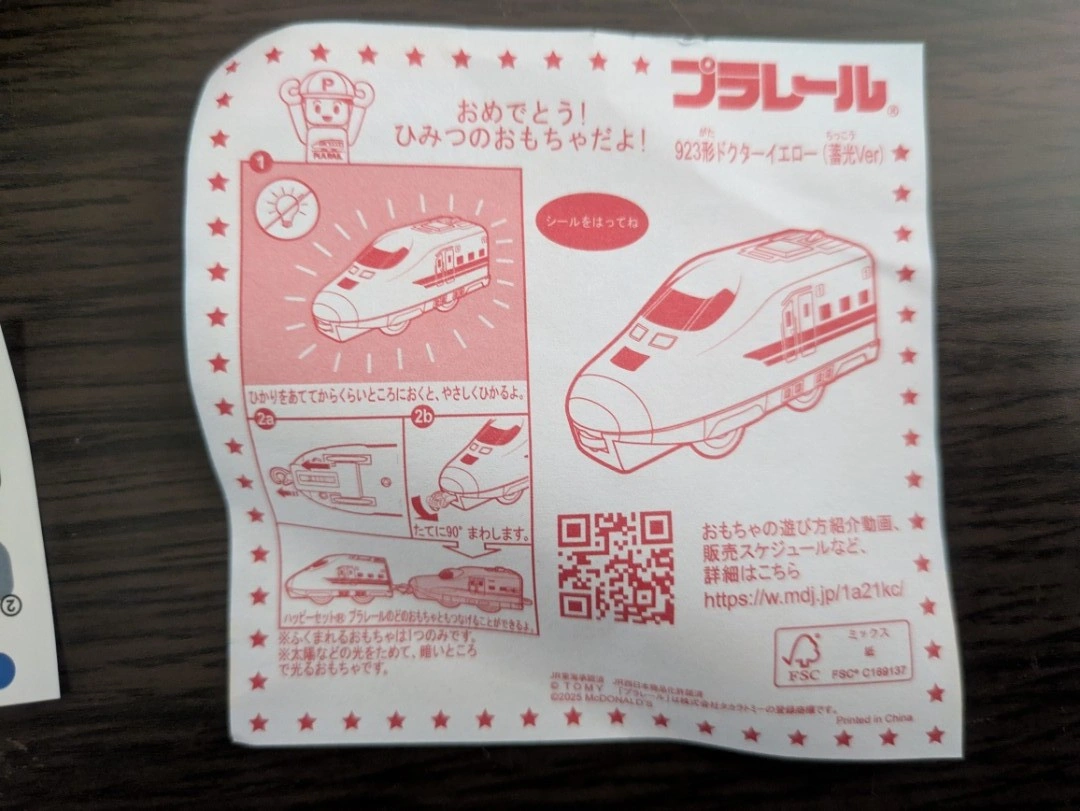 プラレールのドクターイエローです ハッピーセット ひみつのおもちゃ 【情報】 ブランド:タカラトミー 商品:プラレール 色:黄色 【状態】 未使用 【付属品】 シール、説明書