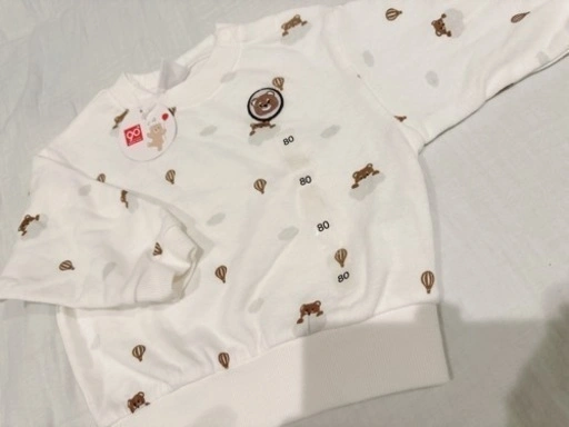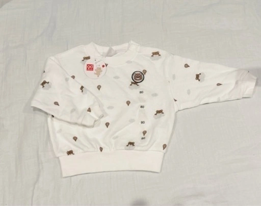 雲にのったくまさんがデザインされたトップスです。 Tシャツより厚く、トレーナーよりは軽く、すごく使いやすい一着だと思います。 サイズも80なので長く使えます。 新品タグ付きです。