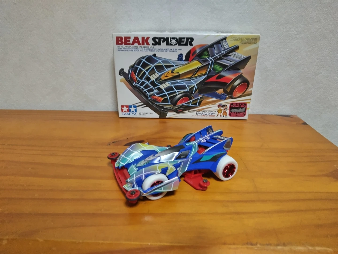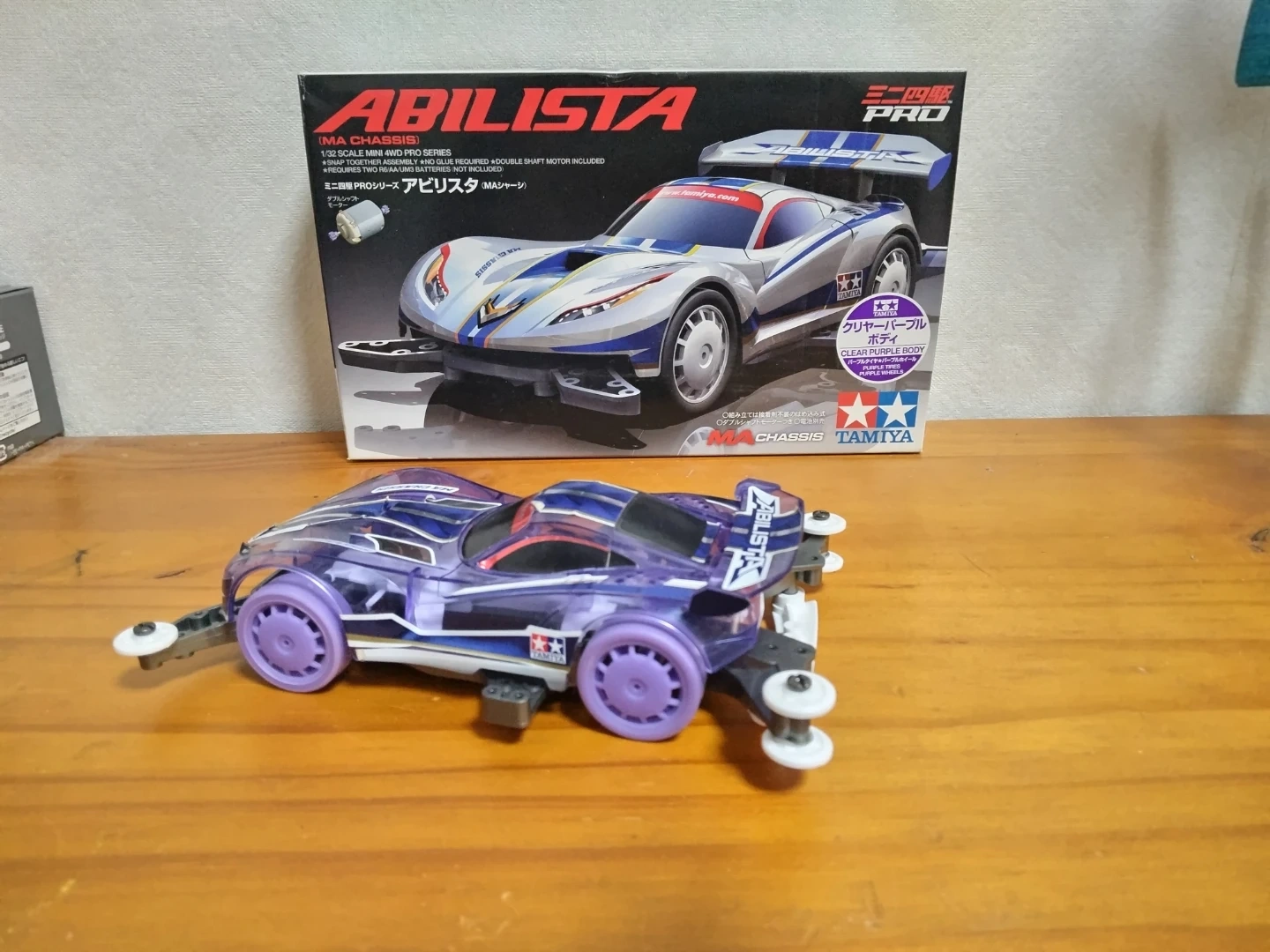 タミヤのミニ四駆完成車4台セットです。外箱、組み立て説明書付き。作動確認済み。電池入れるだけ。 アビリスタクリヤーパープルボディ ー ライジングエッジ ヒートエッジ ピークスパイダー