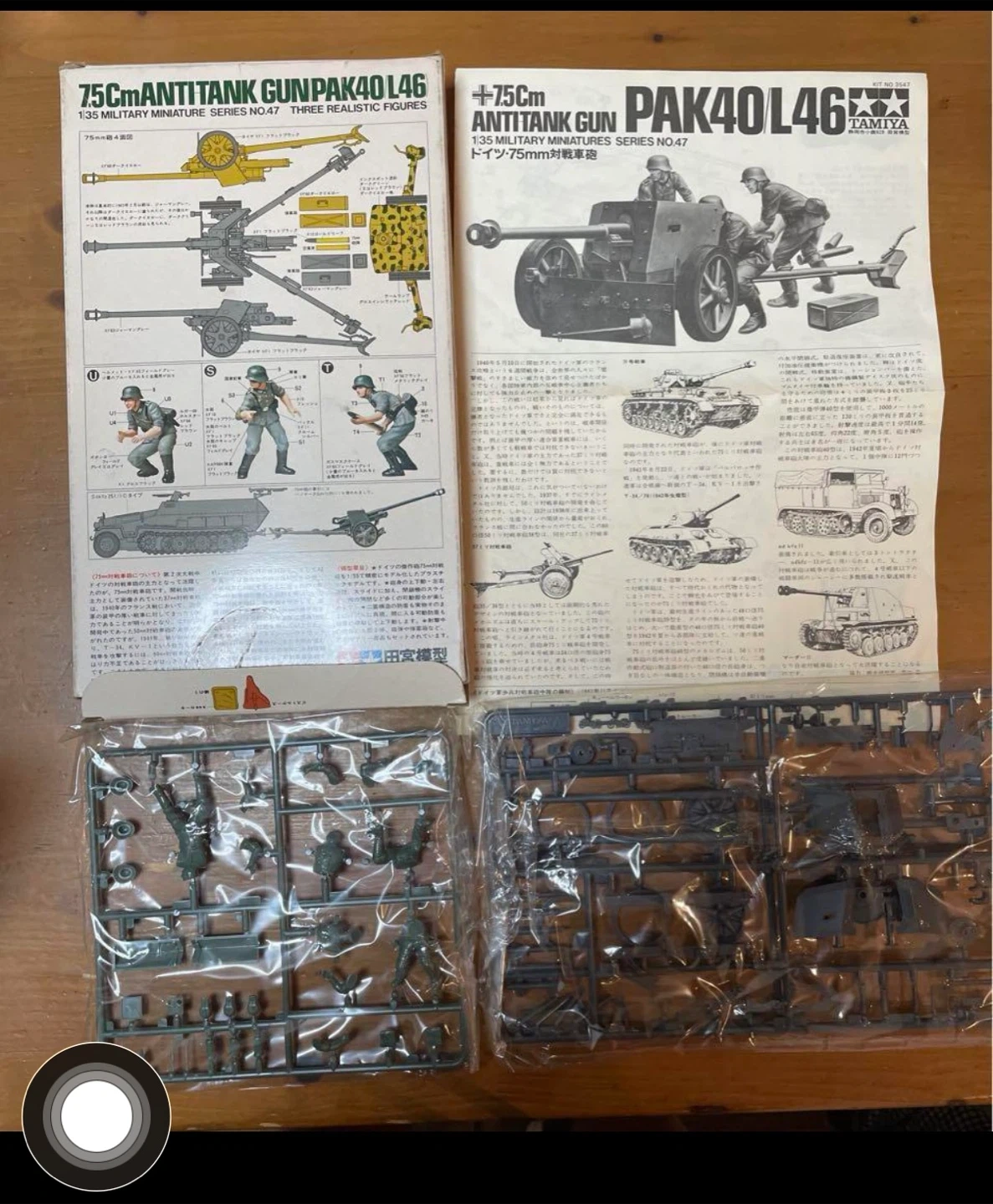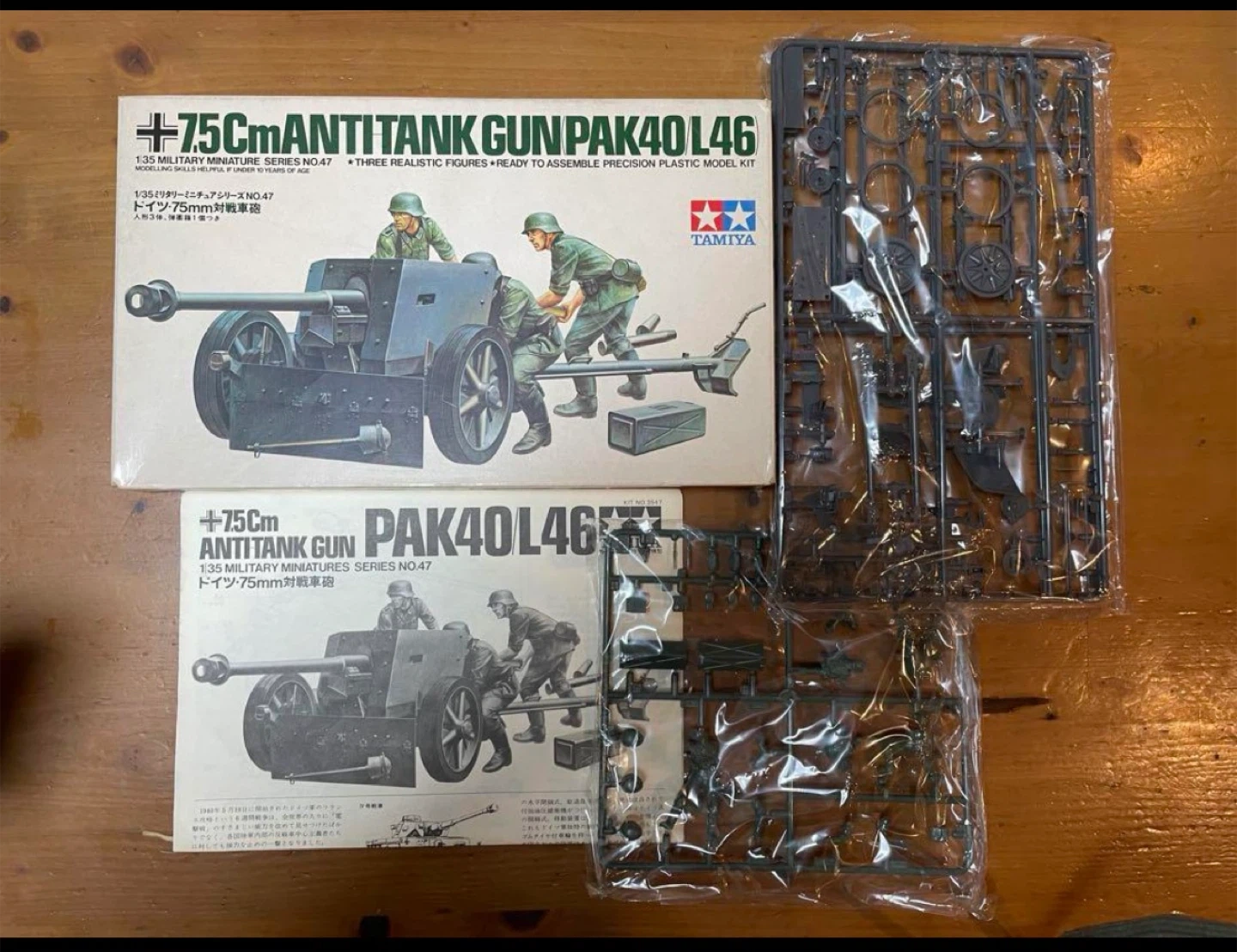 タミヤの7.5cm対戦車砲 PAK40 L46のプラモデルです。 【情報】 ブランド:タミヤ 商品名:7.5cm ANTI TANK GUN PAK40 L46 スケール:1/35 シリーズ:1/35 ミリタリーミニチュアシリーズ No.47 【状態】 未組立品です 中古品であることご了承ください
