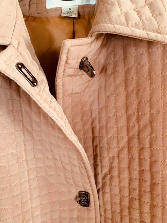 しっかりしたキルティング、お洒落な前立て、スタイリッシュなボックスシルエットのコートです。 留金もクールなクローズフックになっています。 完売製品。 あまり着ていないため、クリーニング後、自宅保管していました。 状態は美品です。 Sサイズですが、日本製Mサイズ位のサイズ感です。 春先にも重宝します。 柄・デザイン···無地 着丈···ミドル カラー···ベージュ 季節感···春、秋、冬 前、2つ、内側胸1つ、ポケット有り。 肩幅···40cm 身幅···50cm 袖丈···55cm 着丈···93cm ご希望の方はお気軽にご連絡ください。