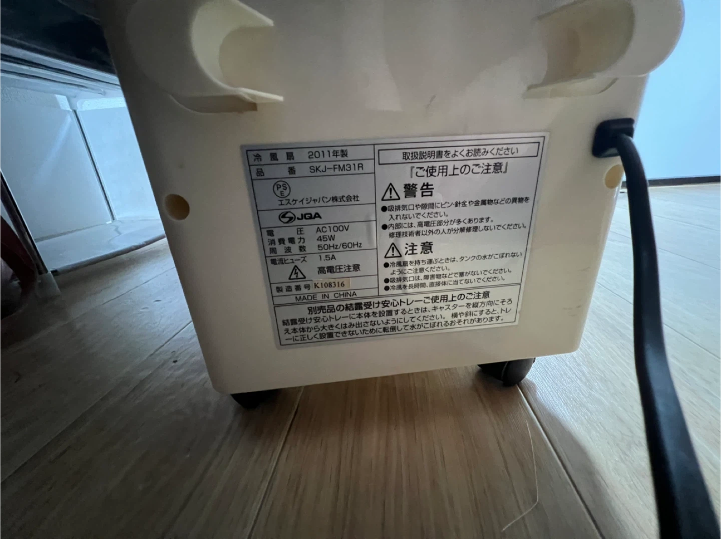 タワー型冷風機、タイマー機能付き、イオン発生機能搭載。 - モデル名: SKJ-FM31R - 操作パネルの機能: タイマー設定(0.5h, 1h, 2h, 4h) - 色: 緑とクリーム色 - デザイン: タワー型冷風機 - イオン機能: イオン発生機能搭載 直接取り引き限定 ※引越しのため、キャンセルできないです。 場所は板橋駅から歩いて7分離れるところです。 購入する前にコンメントお願い致します。 ご覧いただきありがとうございます。