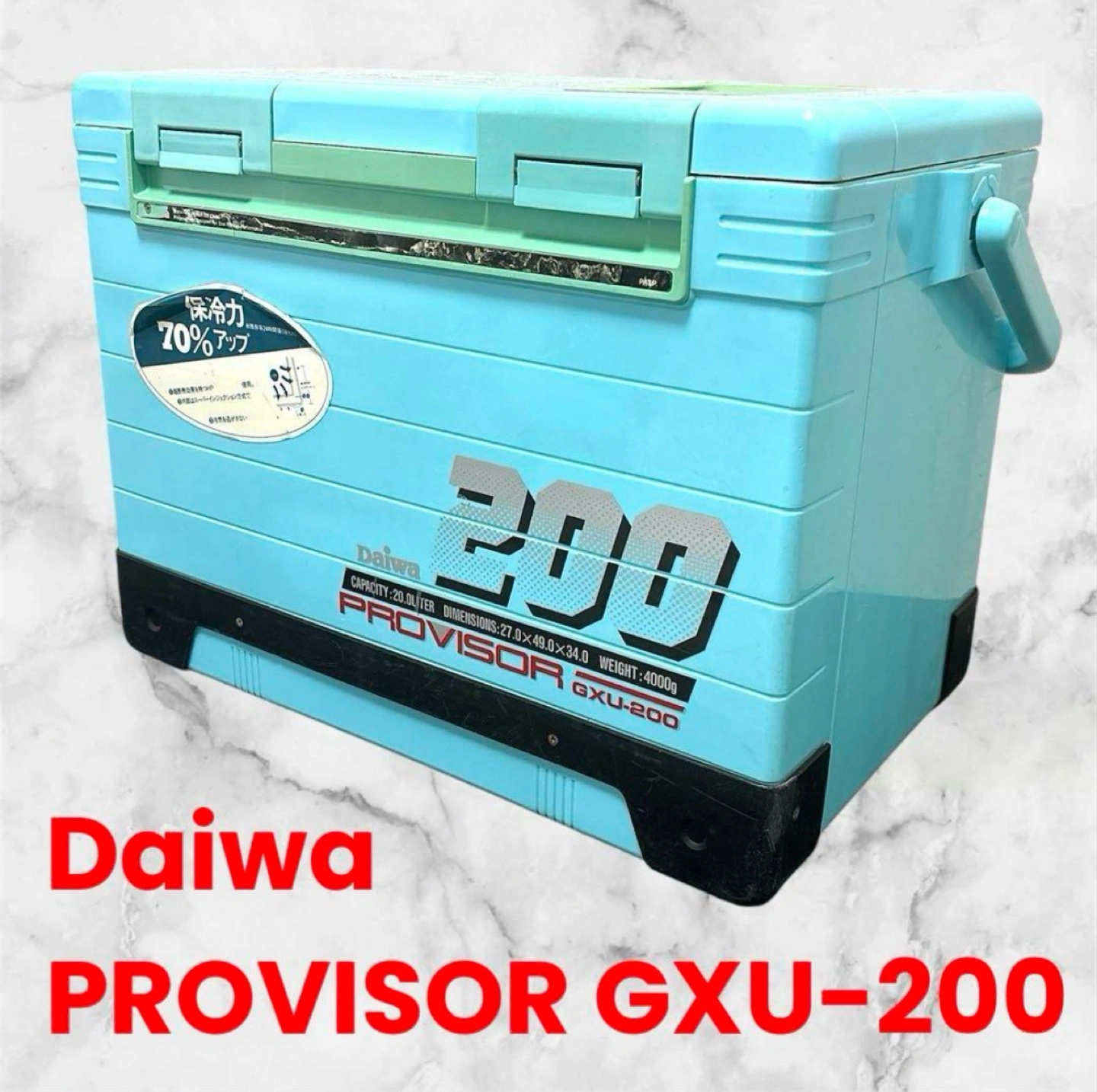 Daiwa ダイワ PROVISOR GXU-200 釣り用 クーラーボックス 中古 ☆投入口付き ☆大型ハンドル ☆容量20L ☆サイズ…27cm × 49cm ××34cm(高さ) ※採寸上、多少の誤差がありますのでご了承ください ☆全体的に洗浄済み 使用や保管による多少のキズや汚れ等あります。 中古になりますので、ご理解ください! 数回しか使用せず長期自宅保管の為、破損等はなく、まだまだ使用いただけます。 使年式等分かりません。 フタの開閉等問題ありません。 他サイトでも出品中です。 他で売れた場合、急に削除しますので、ご了承ください 種類···プロバイザー 釣り キャンプ フィッシング つり具