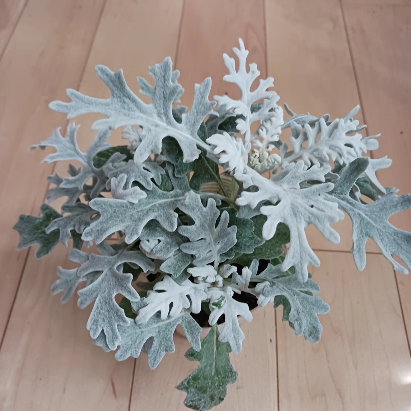 あたたかさホームセンターなどで100円くらいで売られているものとは違い、株数が多く葉にしっかり切れ込みが入り、ひょろひょろではあり ません 雪が積もったような毛のある葉が特徴のダスティミラーです 寒さに強く夏の蒸れに気をつければ長く楽しめます 5枚目からの画像は花や寄せ植えイメージです