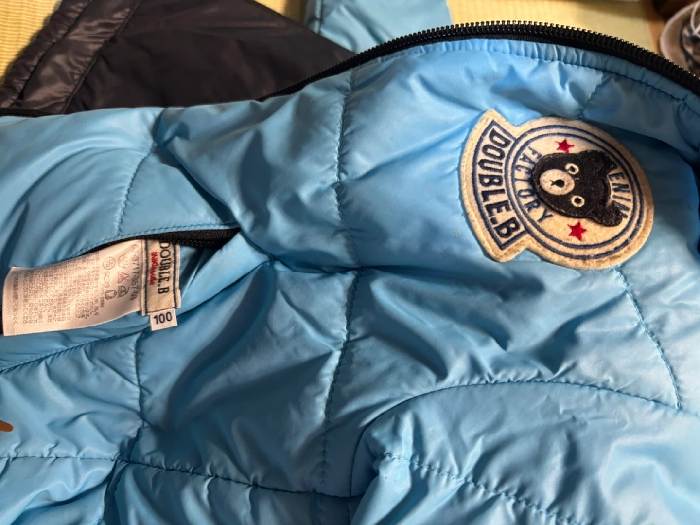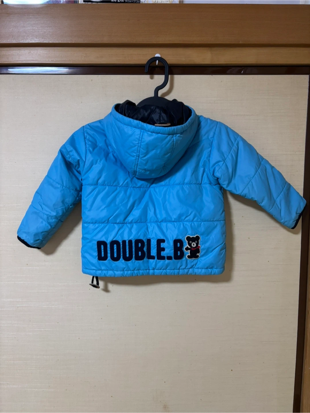 ダブルBのリバーシブルアウターです。 ・ブランド:ダブルB ・サイズ:100 ・色:水色/黒 ・リバーシブル ・使用感はありますが、目立つ傷や汚れはありません 中古品であることをご了承ください。