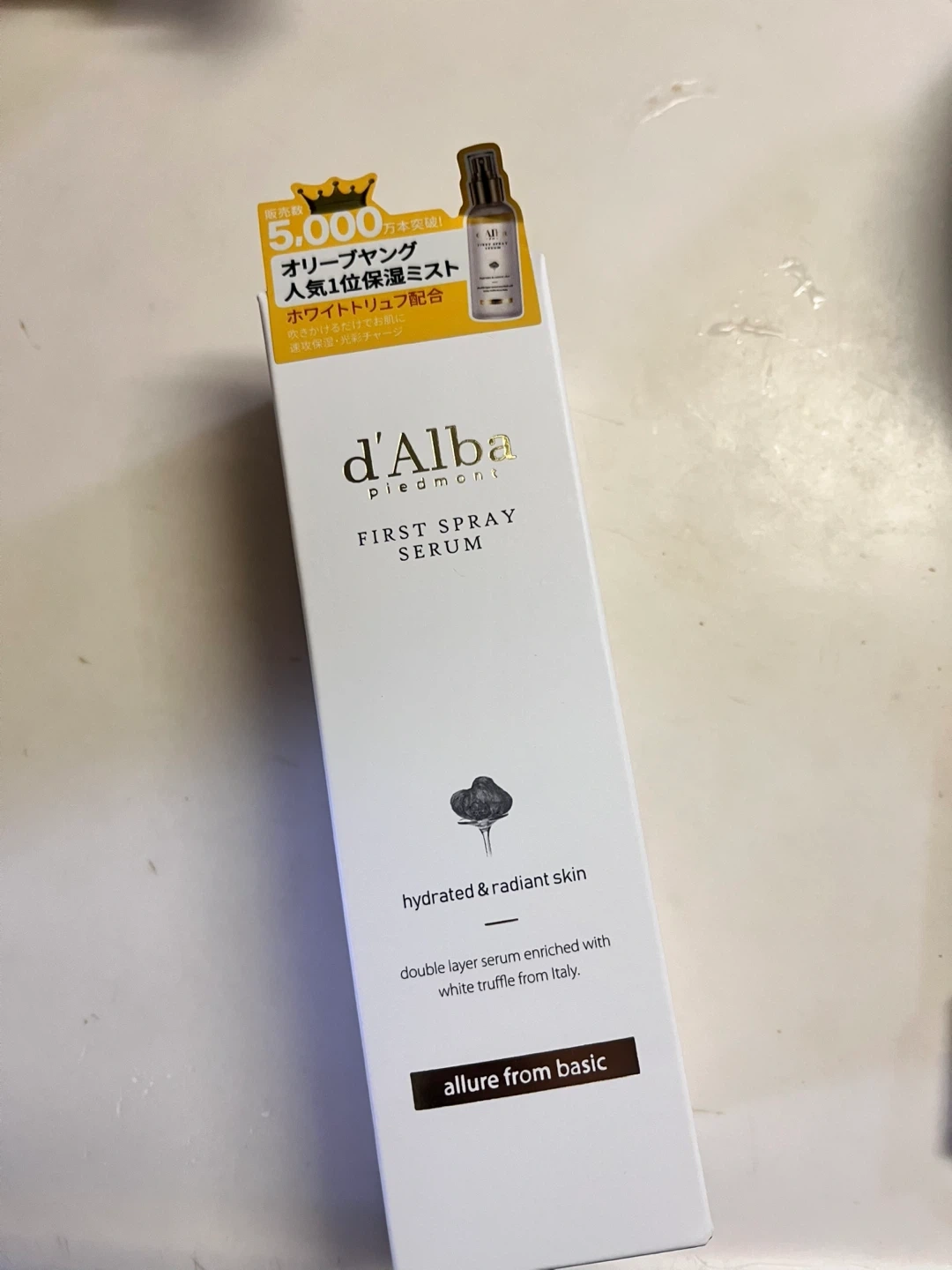 ダルバのファーストスプレイスセラムです。 ・ブランド:ダルバ ・FIRST SPRAY SERUM ・hydrated & radiant skin ・double layer serum enriched with white truffle from Italy.