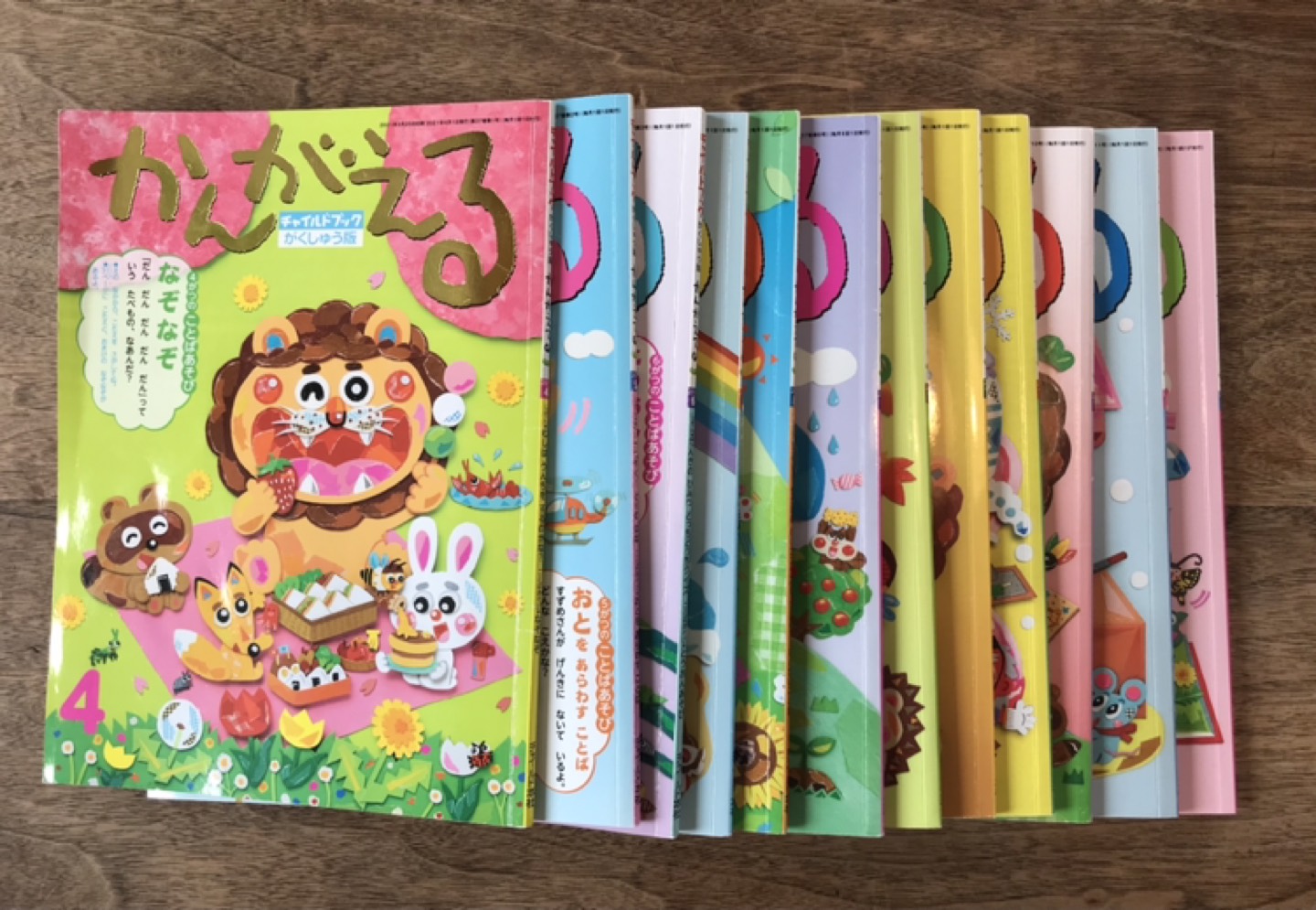 チャイルド社の年長さん向けチャイルドブック学習版「かんがえる」です。 2021年度版1年分揃っています。 名前がシールで貼り付けてあったので、名前がわからなくなる程度に剥がしてあります。 内部の付属のお楽しみシールは全て使用済です。 切り離し線はほとんど切り離されています。 内部に書き込みや汚れ、欠けはありません。 表紙、裏表紙ともに折れが若干ありますが、全体的に綺麗です。 捨てるにはもったいない気がするので。 待合室やキッズスペースに置くのにいかがでしょうか。