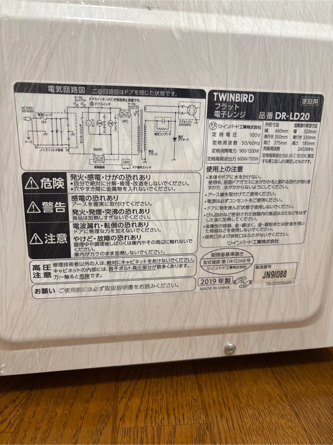 ツインバードの電子レンジです 【情報】 ブランド:ツインバード 型番:DR-LD201 年式:2019年製 カラー:ホワイト 【状態】 ラップされた状態です。 使用はしております。 中古品であることご了承ください