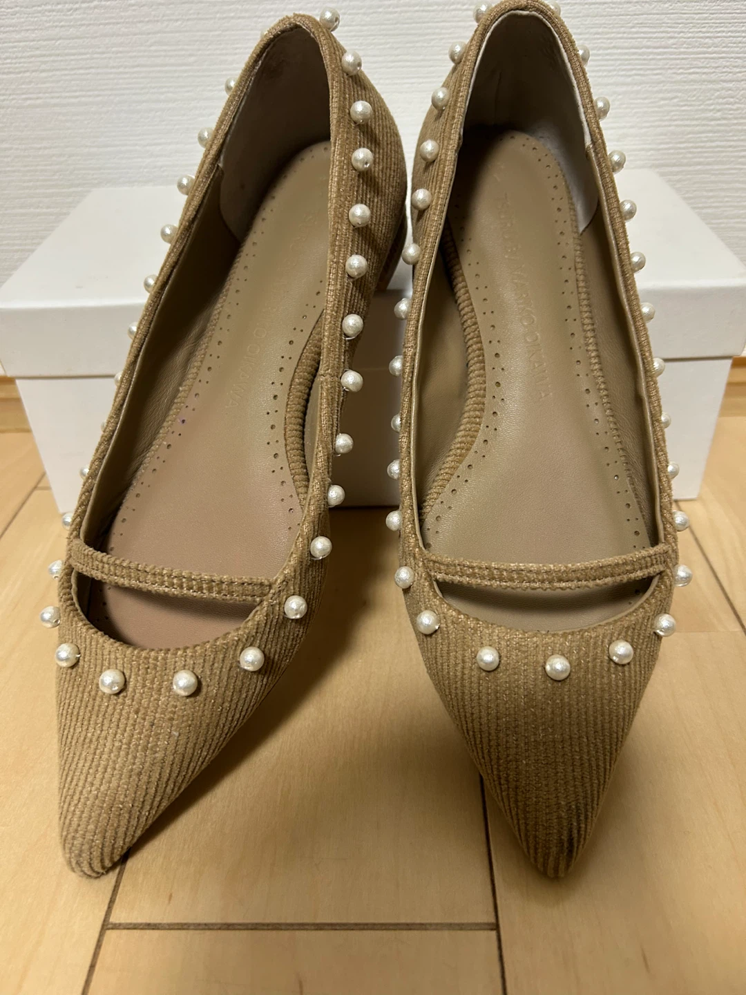 閲覧有難うございます。 2〜3回短時間履き、サイズが少し大きく履かなくなり下駄箱にしまってありました。 コーデュロイの素材、パールがあしらわれているので、カジュアルにもセミフォーマルにも使って頂けるかと思います。 あくまでも中古の旨、ご理解頂ける方のみ、お取引きをお願い致します。 神経質な方はご遠慮下さいませ。