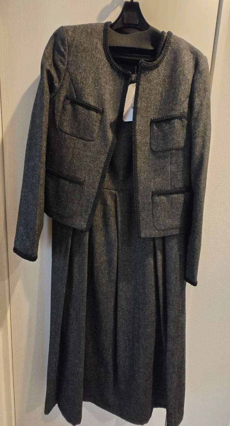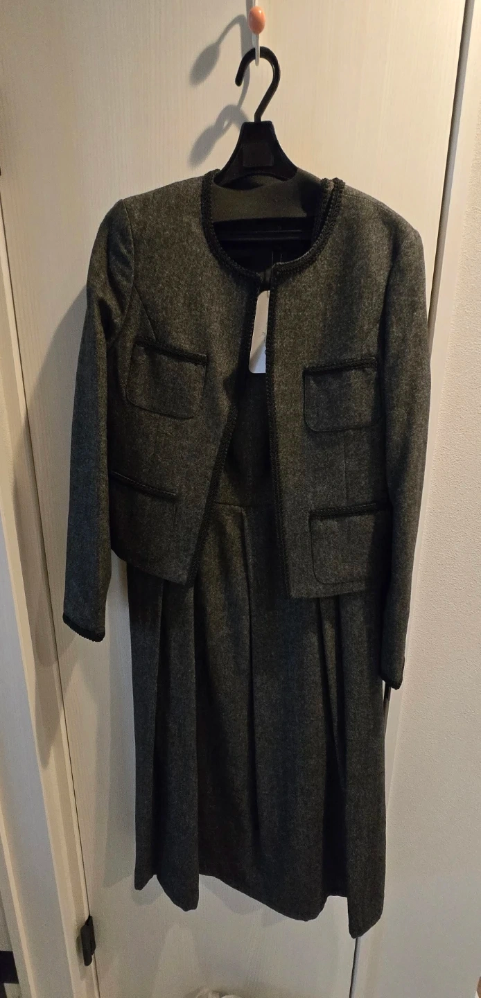 結婚式、卒業式、入学式に良さそうです。 子供が留学に行ったので一度も着ませんでした。 丈は人によって違いますが、165cmの私の背丈から8分丈のスカート丈ではないかと思います。 冬から春先までできそうです。 2万8千円くらいで買った記憶があります。